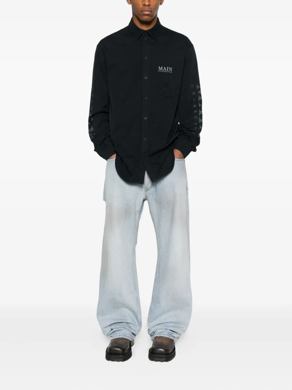 Черный длинные рукава вышитый слоган "Main Character" застежка на пуговицах закругленный нижний край хлопок