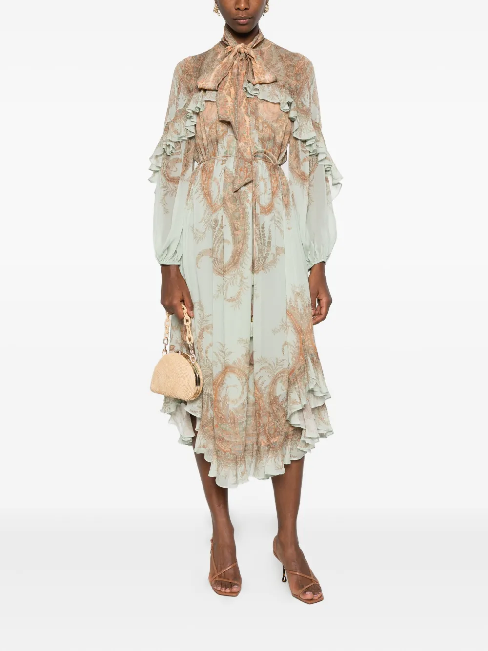 Платье с рюшами и принтом "пейсли" ZIMMERMANN, синий 166 253₽