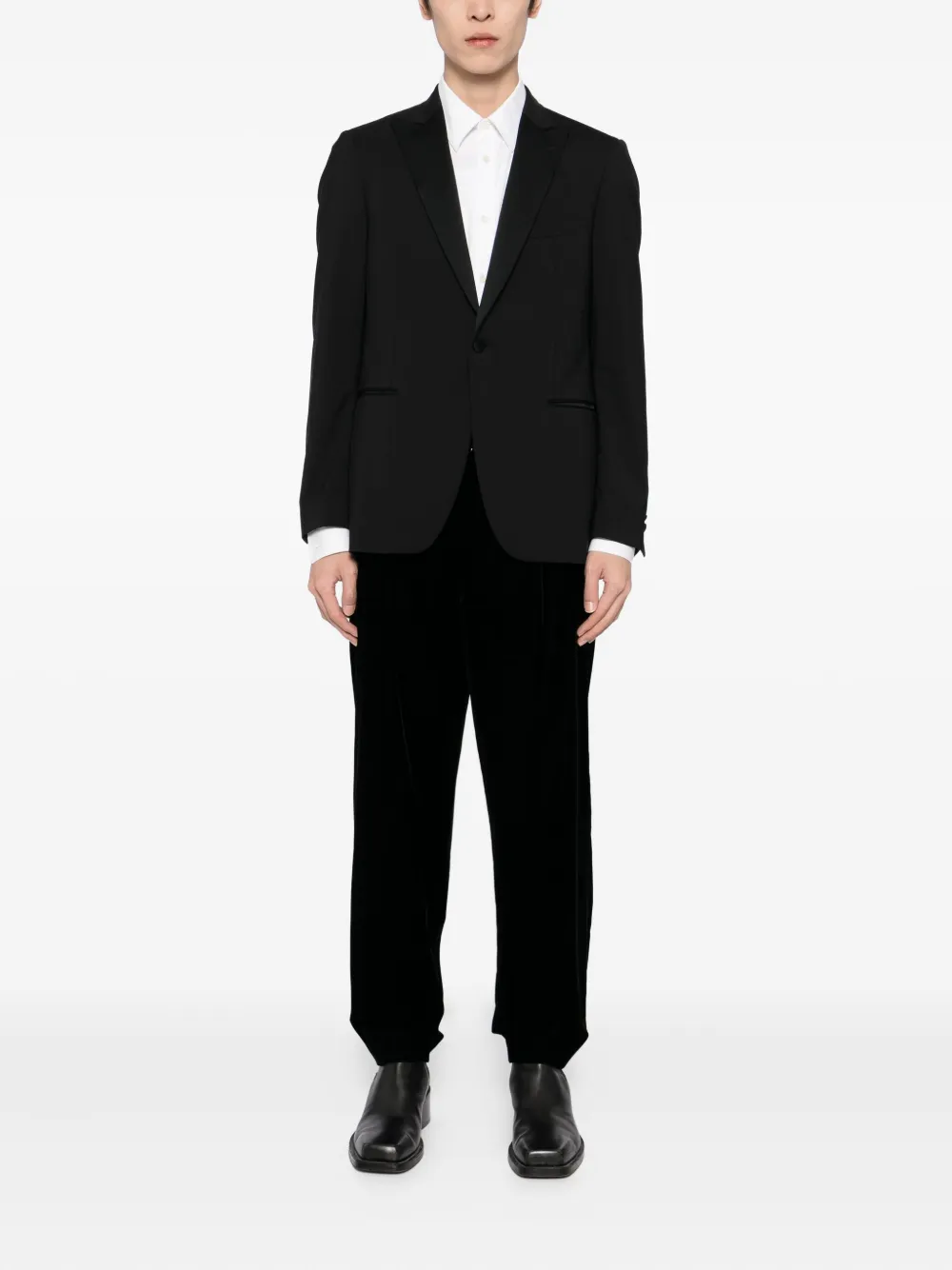 Черный застежка на пуговицу и молнию спереди два боковых прорезных кармана два задних прорезных кармана