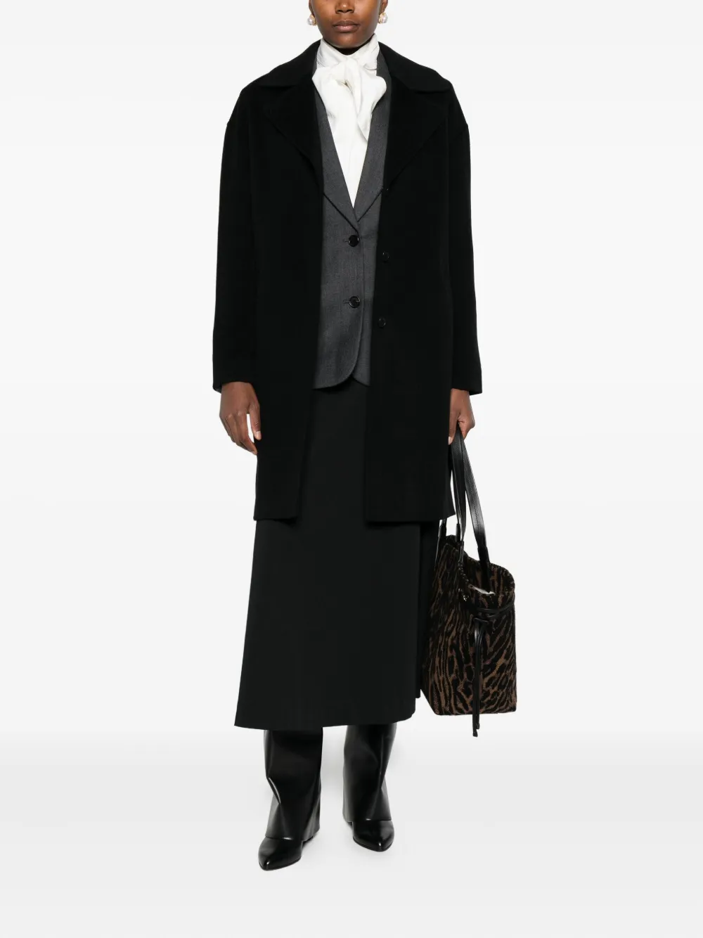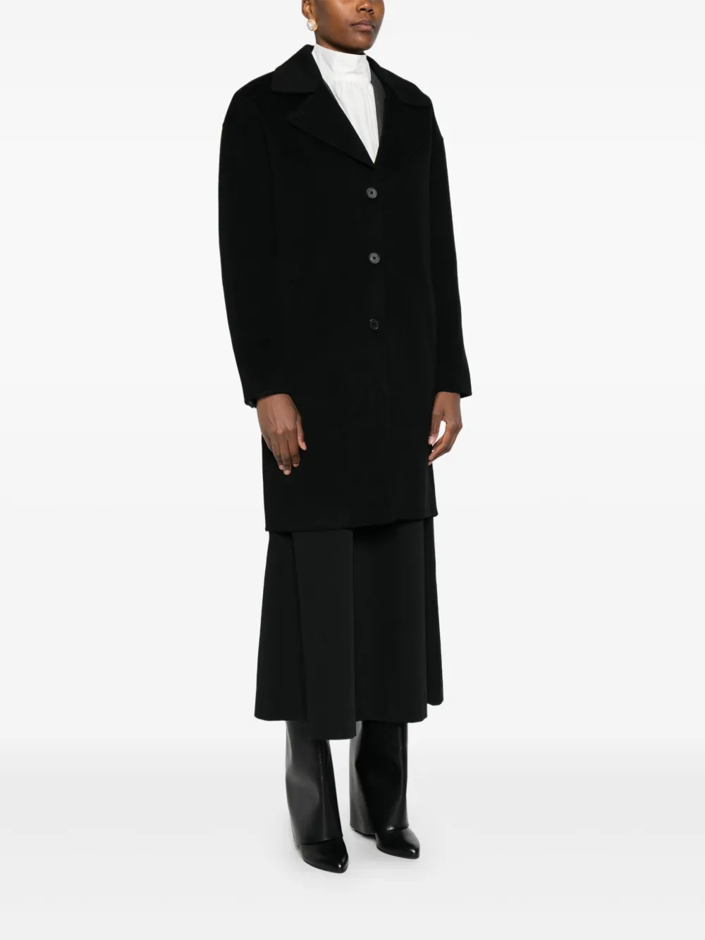 Черный застежка на пуговицах спереди лацканы с вырезом длинные рукава прорезные карманы прямой подол