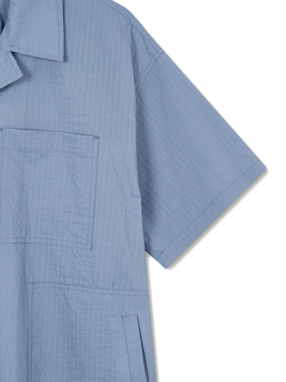 Синий короткие рукава воротник поло застежка на пуговицы шнуровка накладные карманы