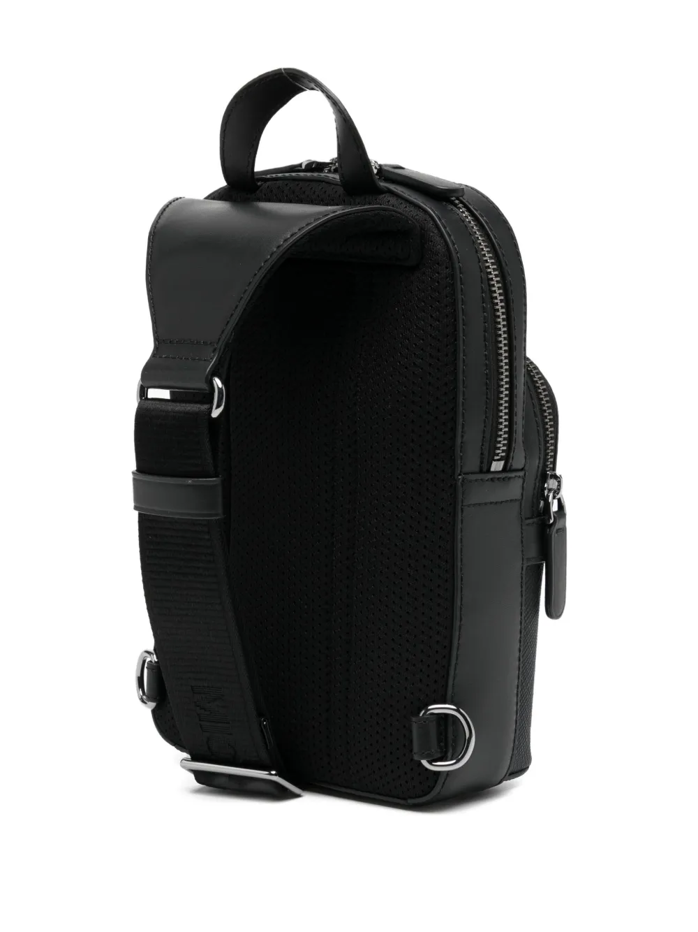 Черный верхняя застежка на молнии регулируемый плечевой ремень нашивка с логотипом серебристого оттенка