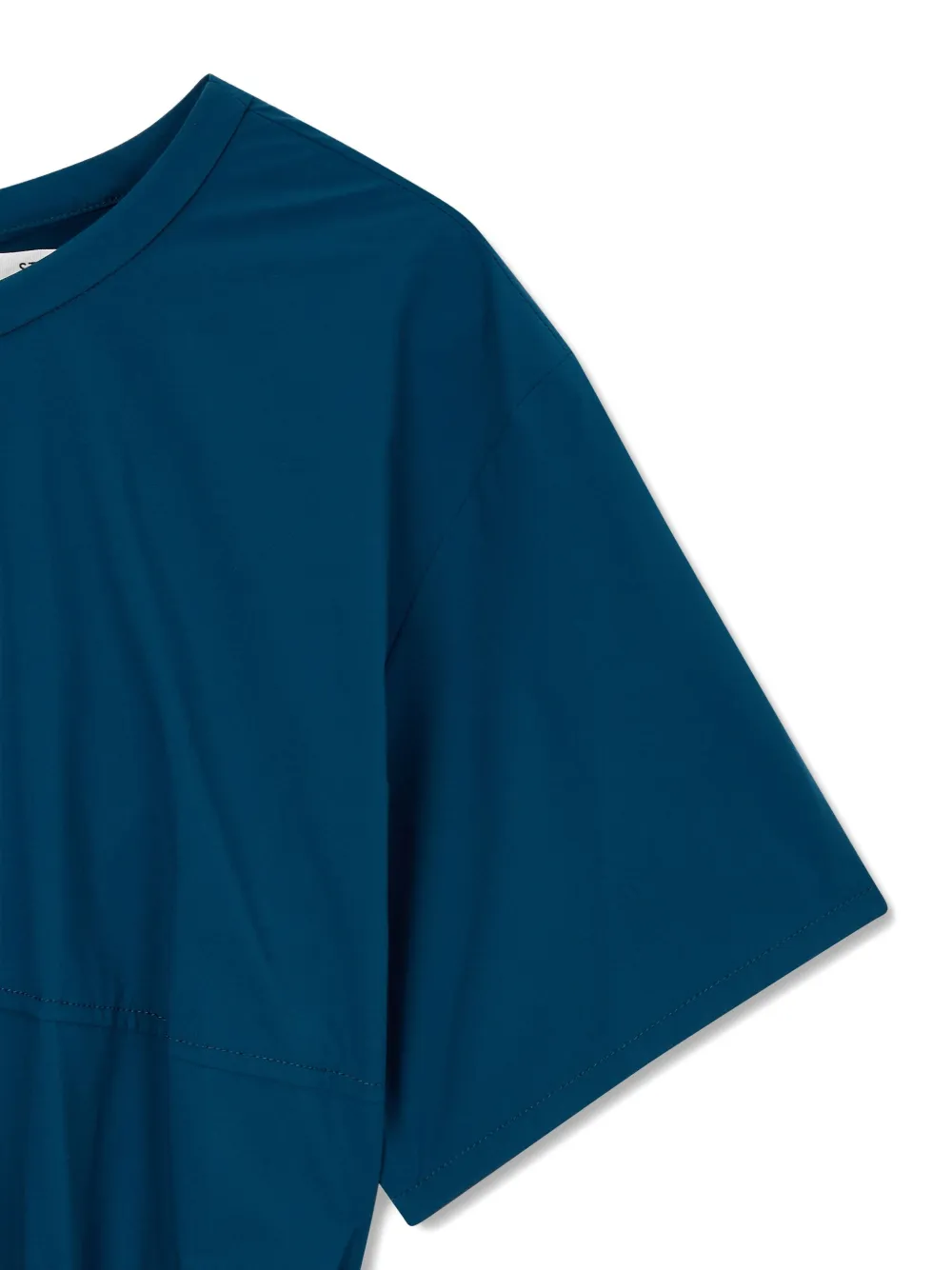 Синий эластичный пояс короткие рукава круглый вырез