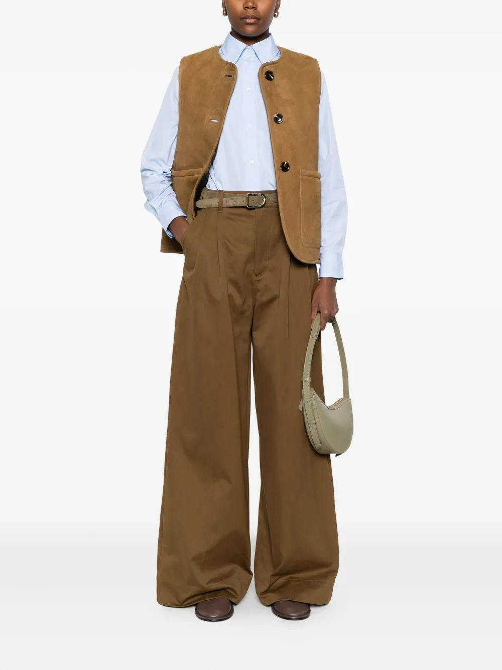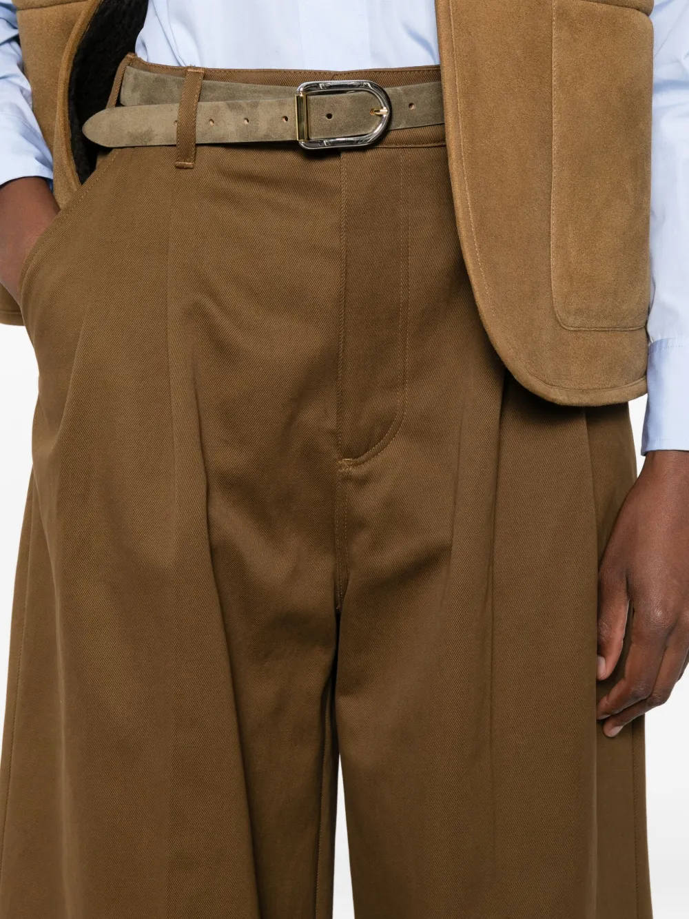 Коричневые плиссированная передняя часть подвернутый край застежка на пуговицах боковые карманы