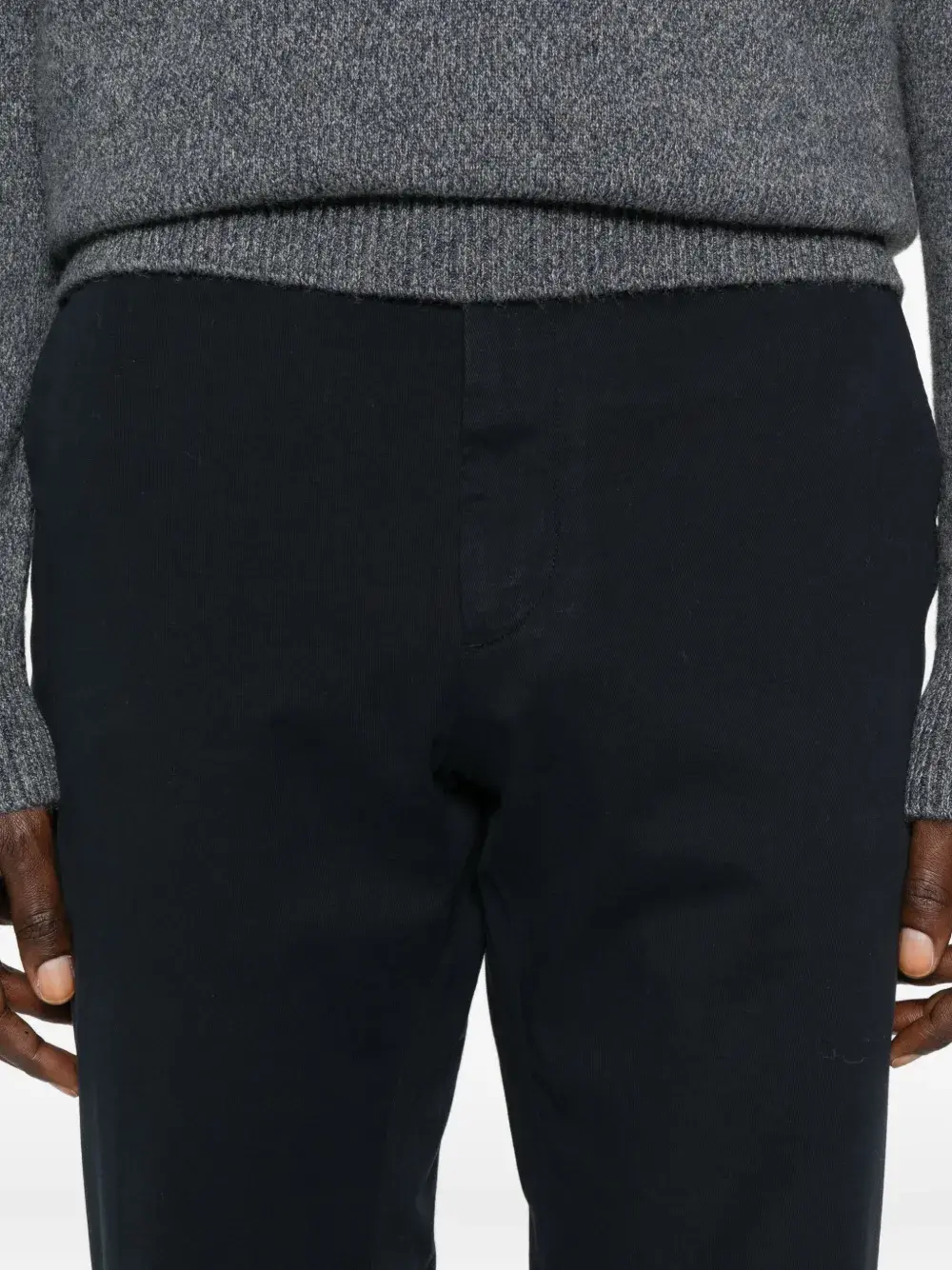 Темно-синий прямые штанины передние карманы пуговичная ширинка средняя посадка