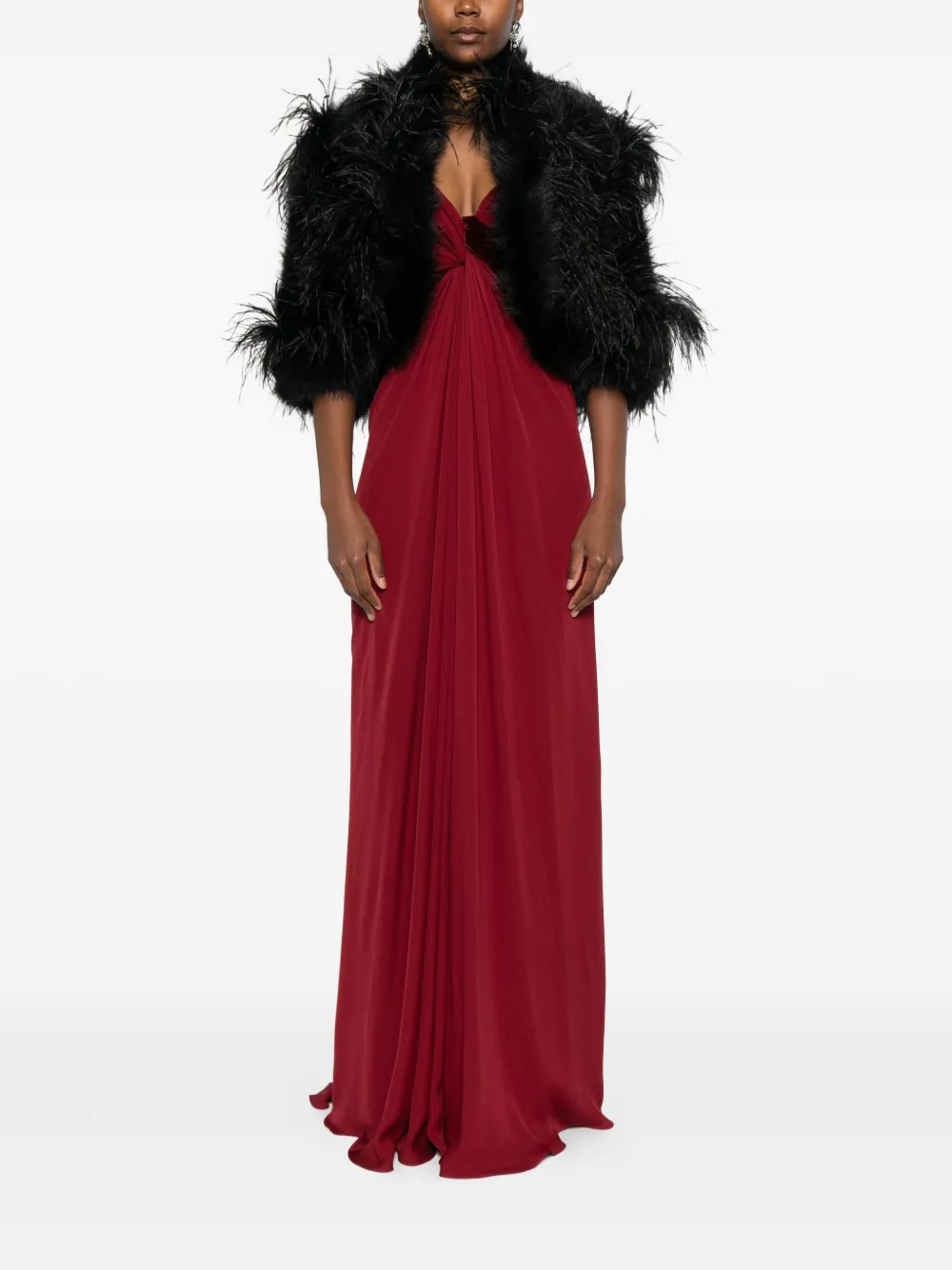 Куртка с отделкой из перьев Elie Saab, черный
