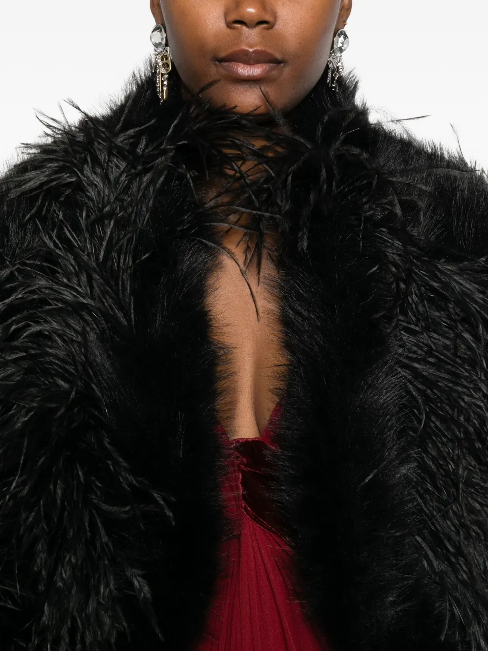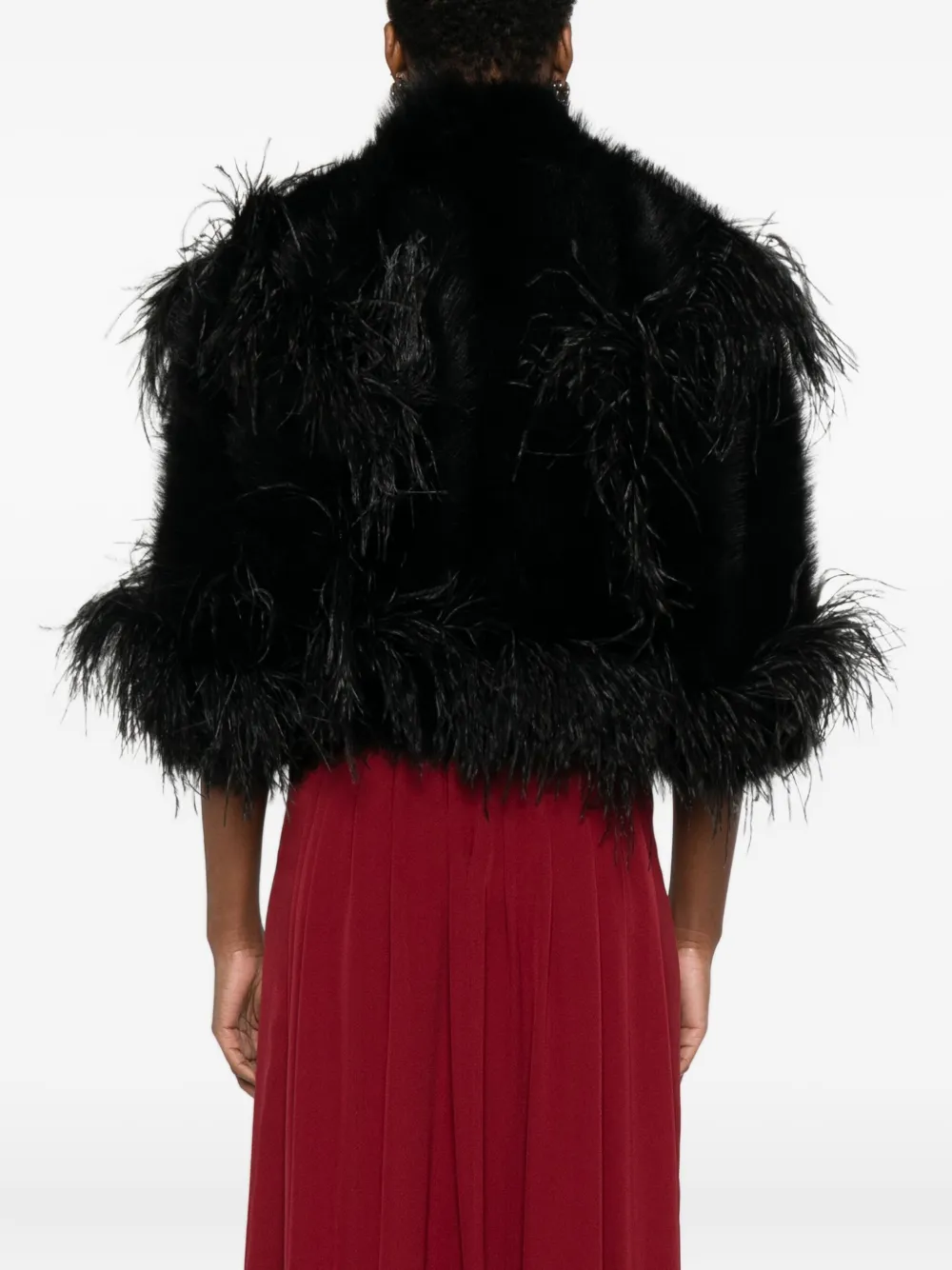 Черный отделка перьями укороченный дизайн из искусственного меха открытая передняя часть прямой низ