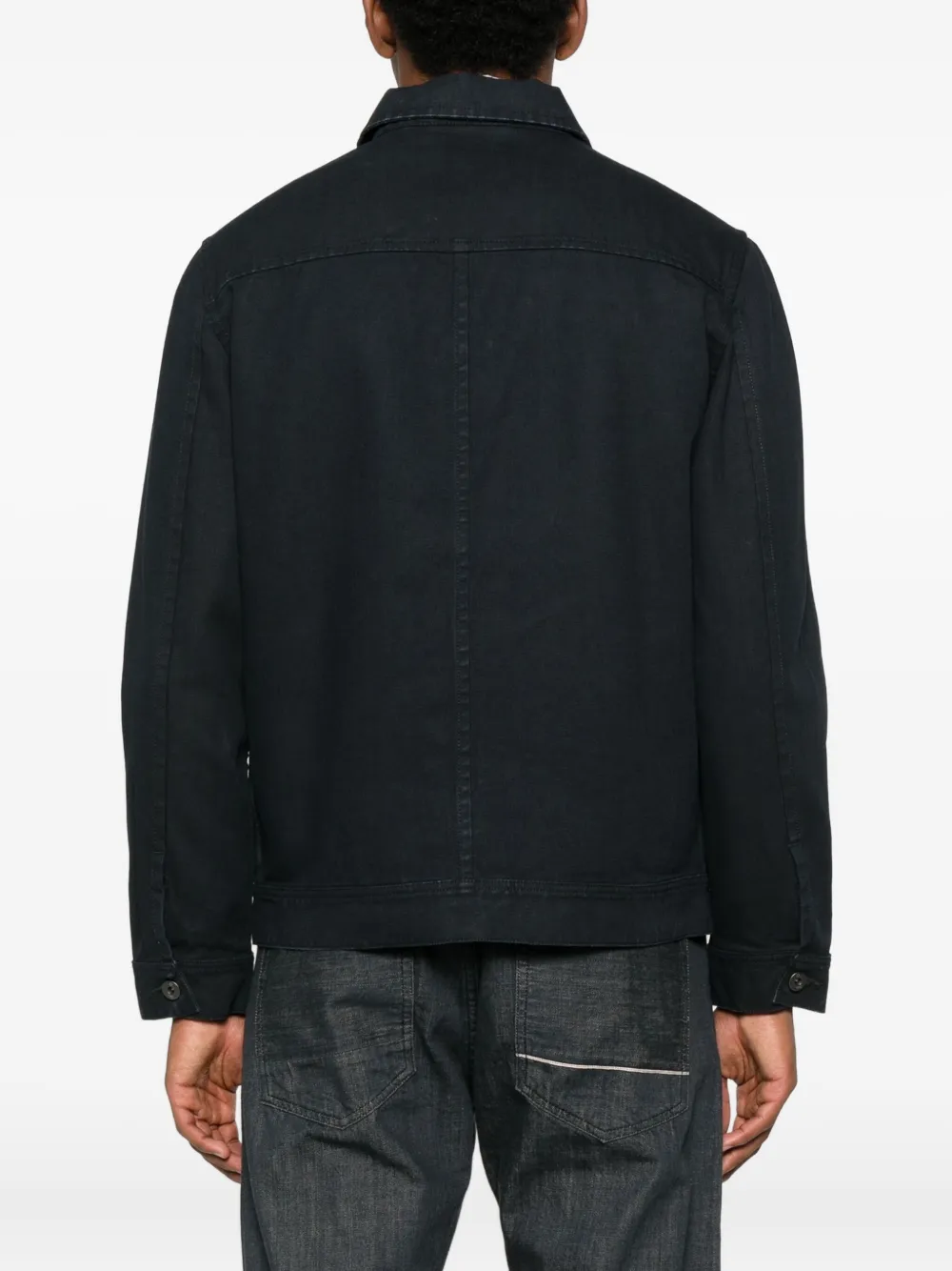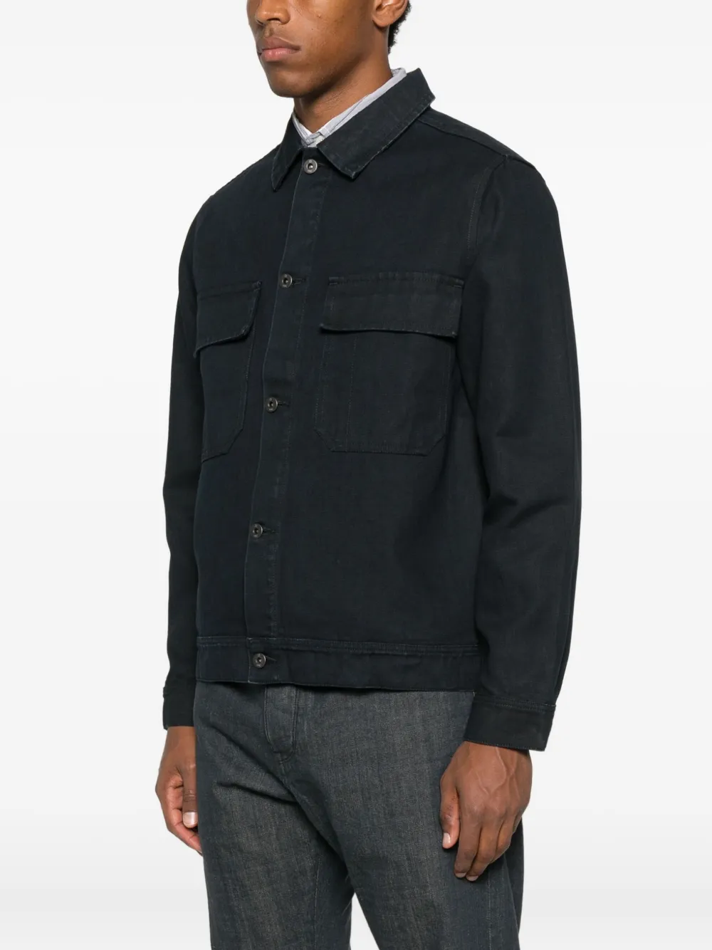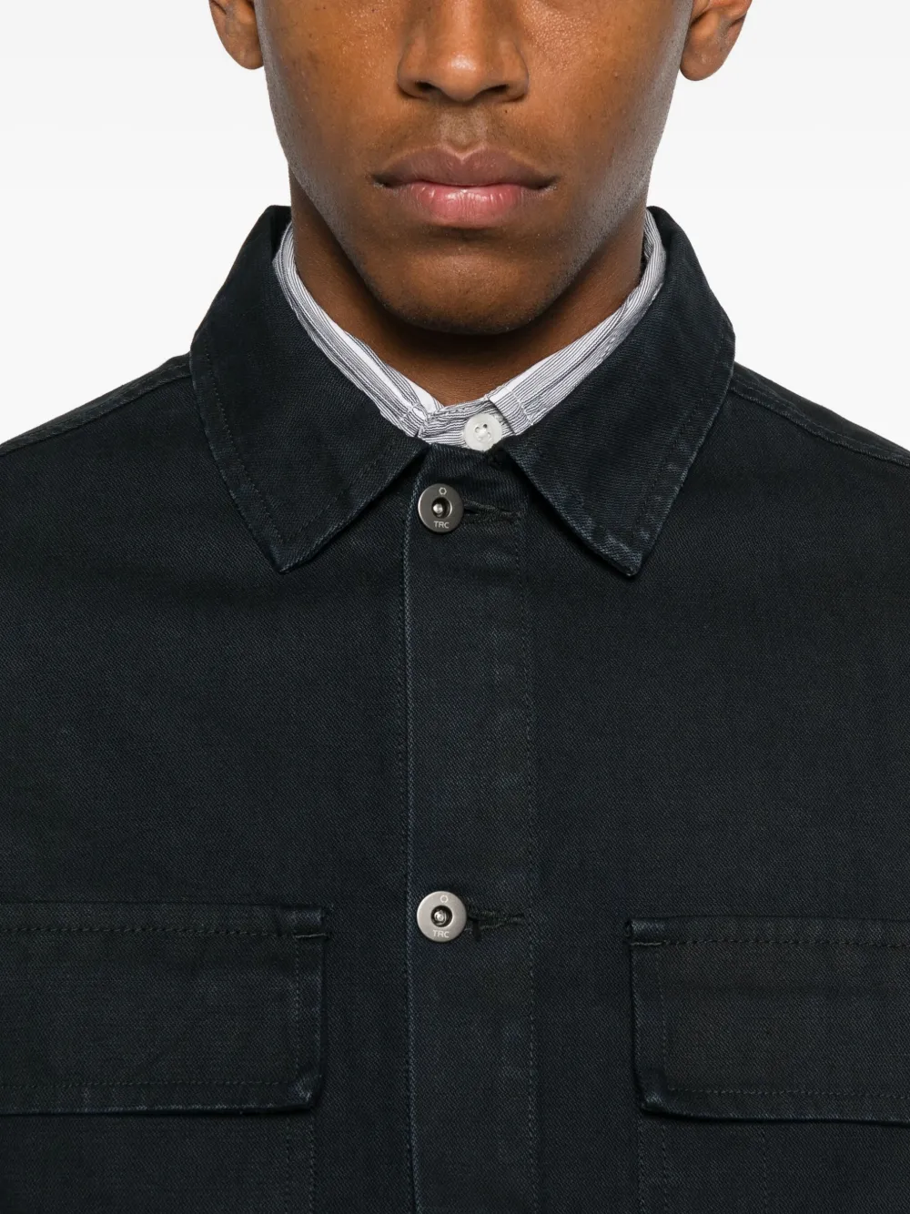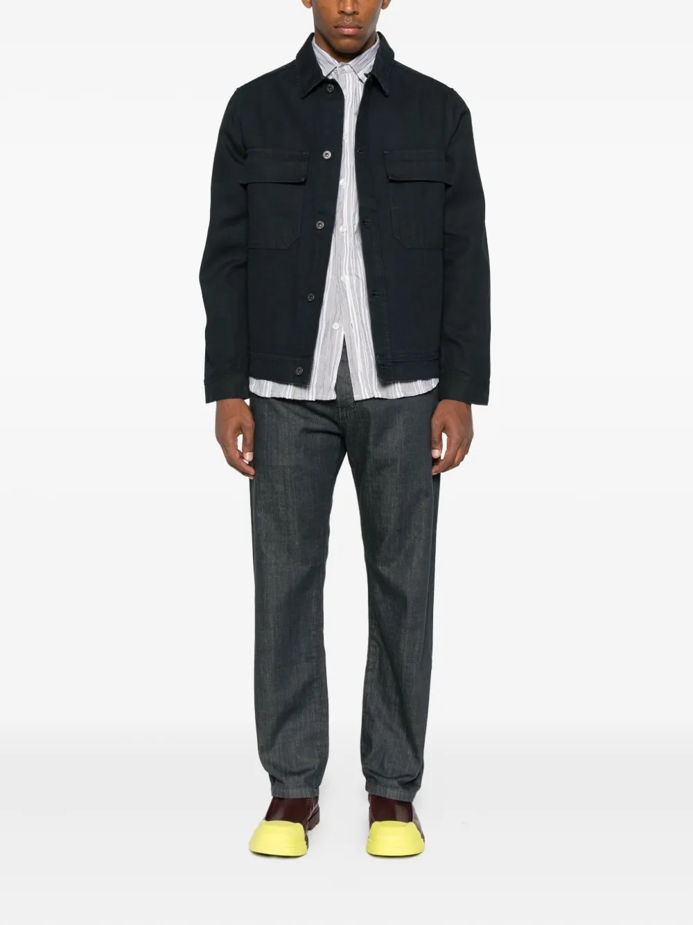 Темно-синий застежка на пуговицы спереди два накладных кармана с клапанами классический воротник длинные рукава прямой низ