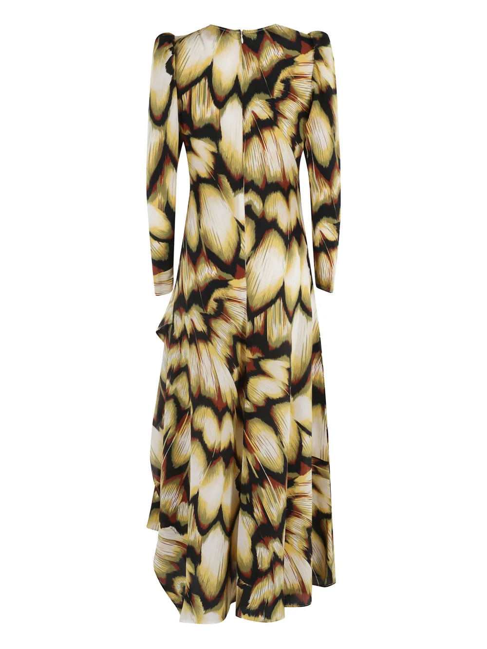 Off-White платье с цветочным принтом, пышными рукавами, V-образным вырезом, асимметричным подолом и скрытой застежкой-молнией