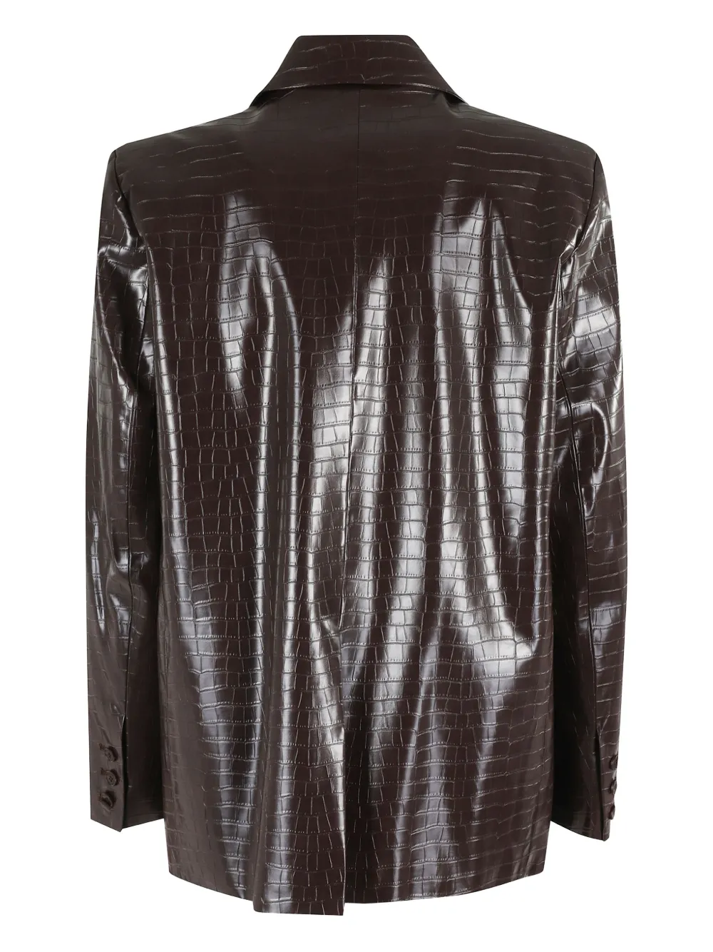 Коричневый жакет под крокодила с лацканами, застежкой на пуговицы, длинными рукавами и прямым подолом