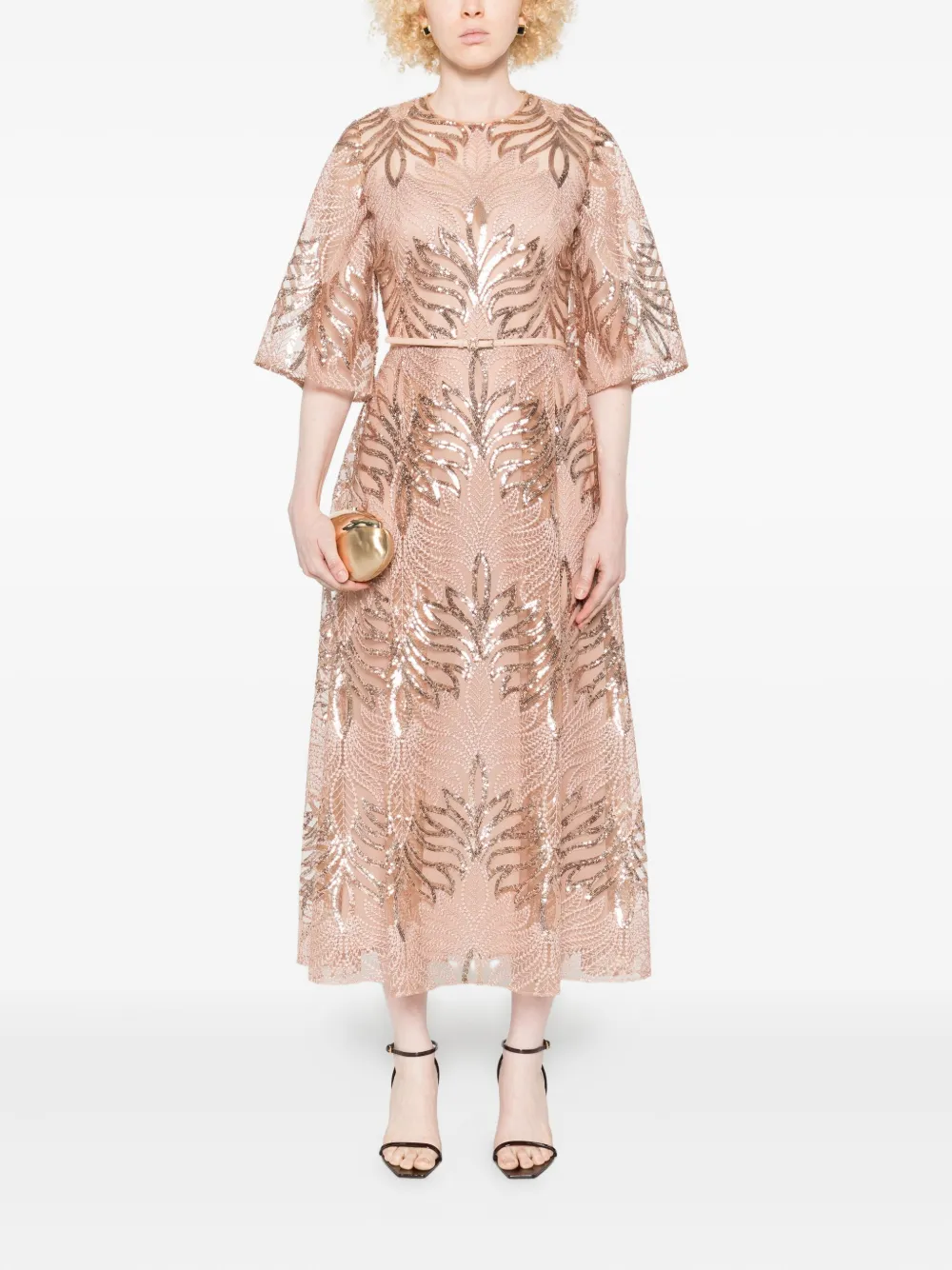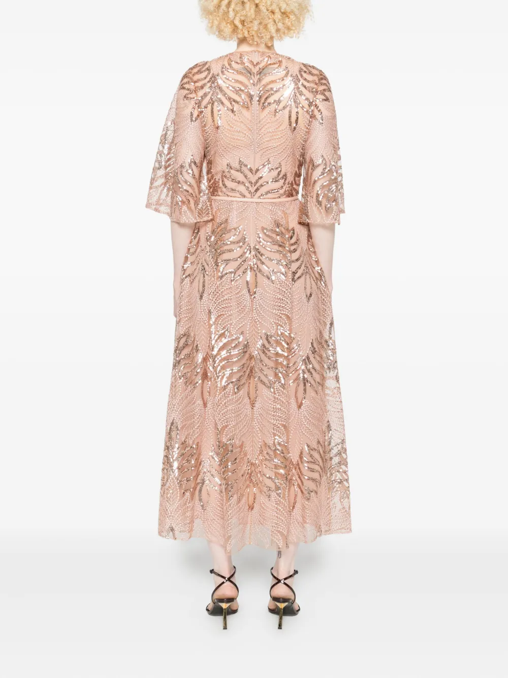 Платье миди, украшенное пайетками Elie Saab, розовый