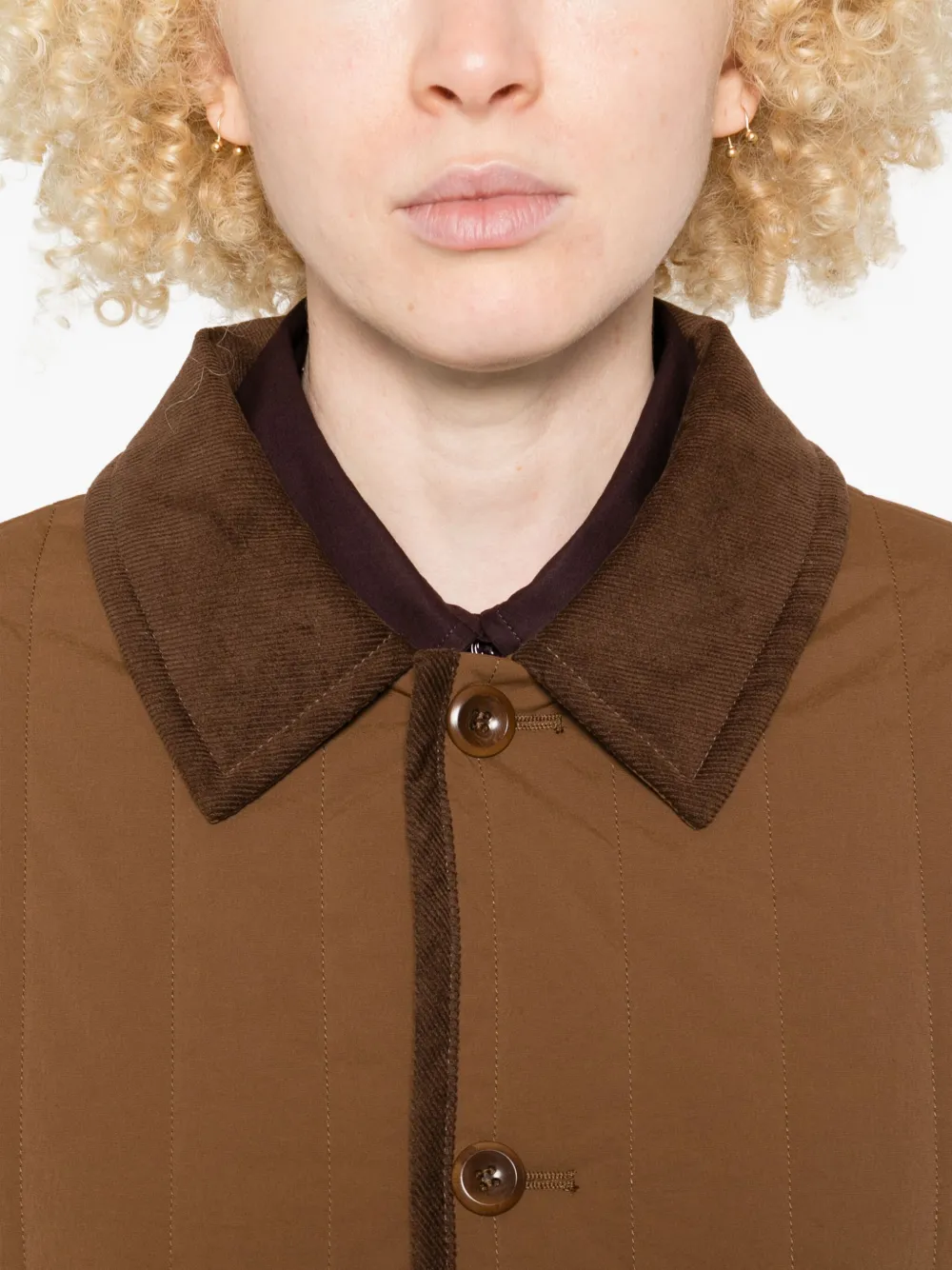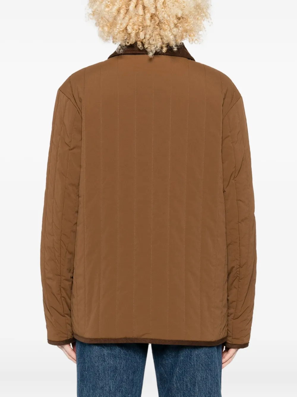Коричневый стеганый узор отделка из вельвета застежка на пуговицы накладные карманы длинные рукава