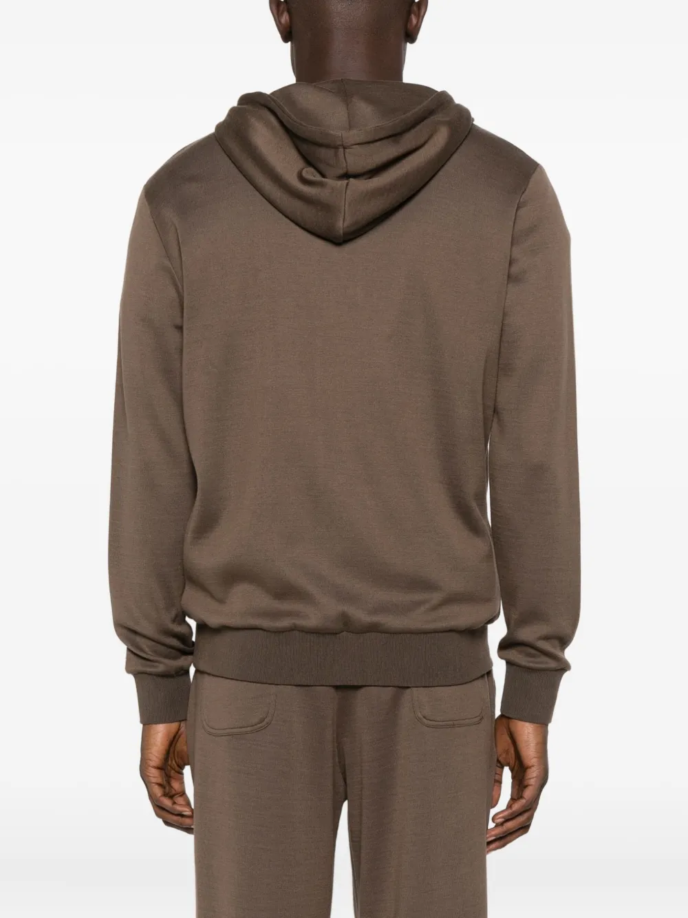 Коричневый цвет какао капюшон застежка-молния спереди карман-кенгуру манжеты и нижний край в рубчик