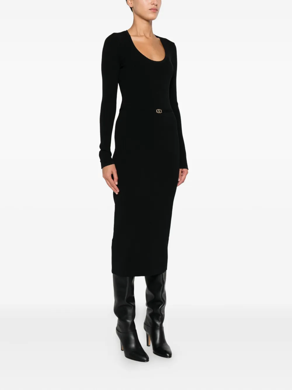 Платье с ребристой текстурой и ремнем TWINSET, черный