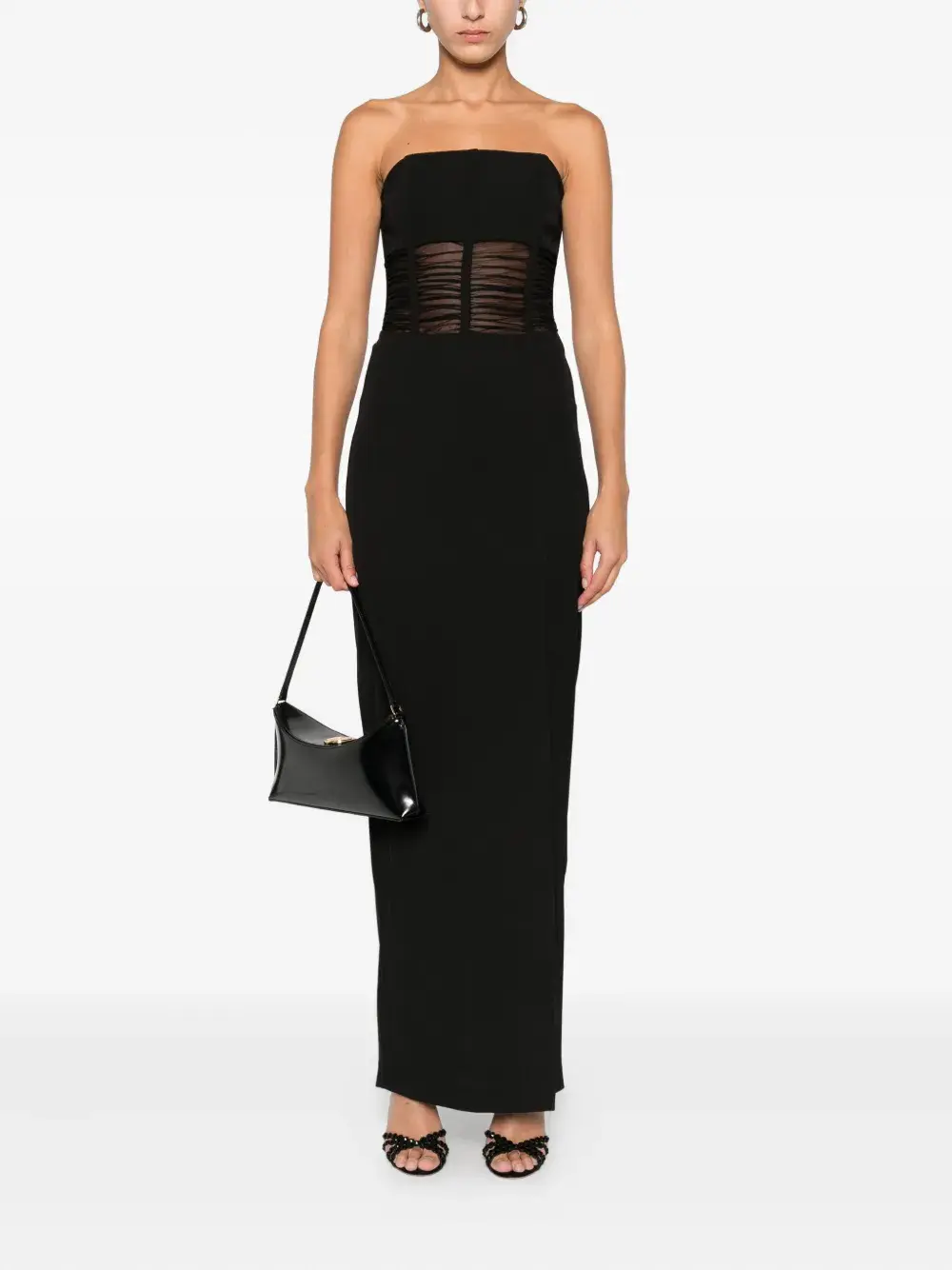 Черный вставка из сетки приталенный лиф прямая юбка без бретелек