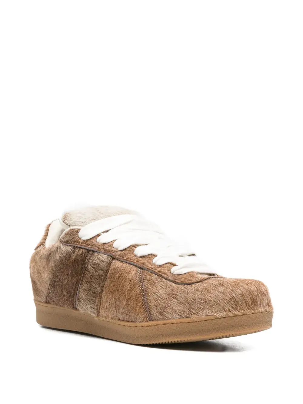 Бежевый кожа застежка на шнуровке спереди мягкий воротник круглый носок резиновая подошва