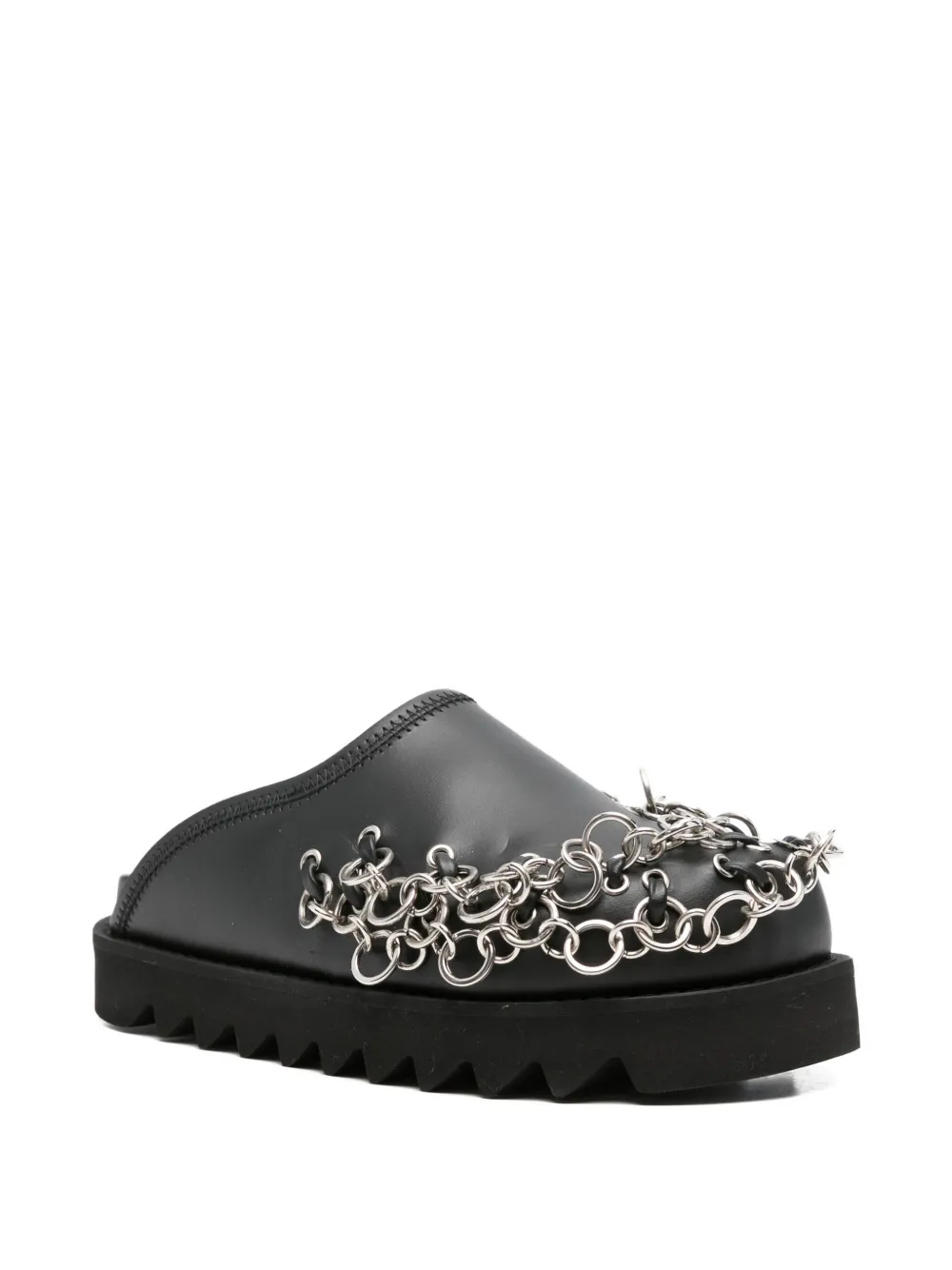 Черный декор с цепочкой модель без застежек круглый носок плоская подошва