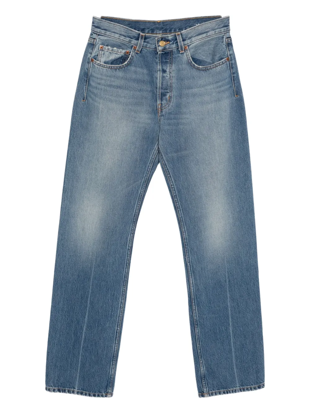 Индиго-синий застежка на пуговицу и молнию спереди классические пять карманов нашивка с логотипом сзади