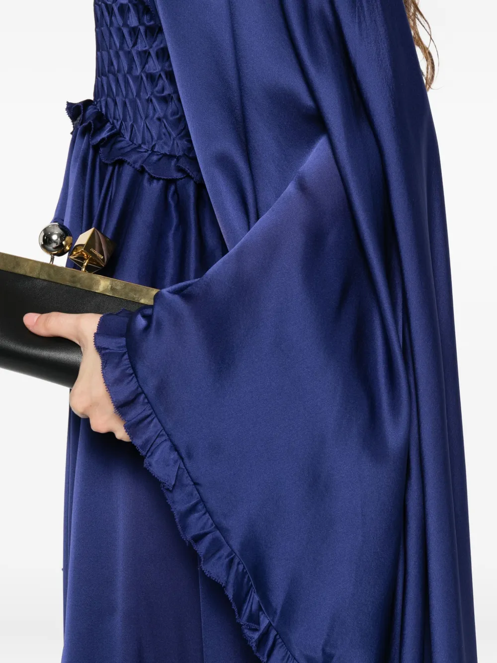 Королевский синий собранный лиф оборчатый вырез оборчатый край длинные рукава разрезы спереди