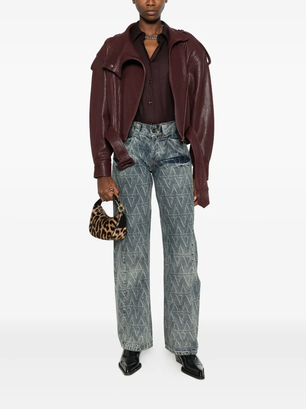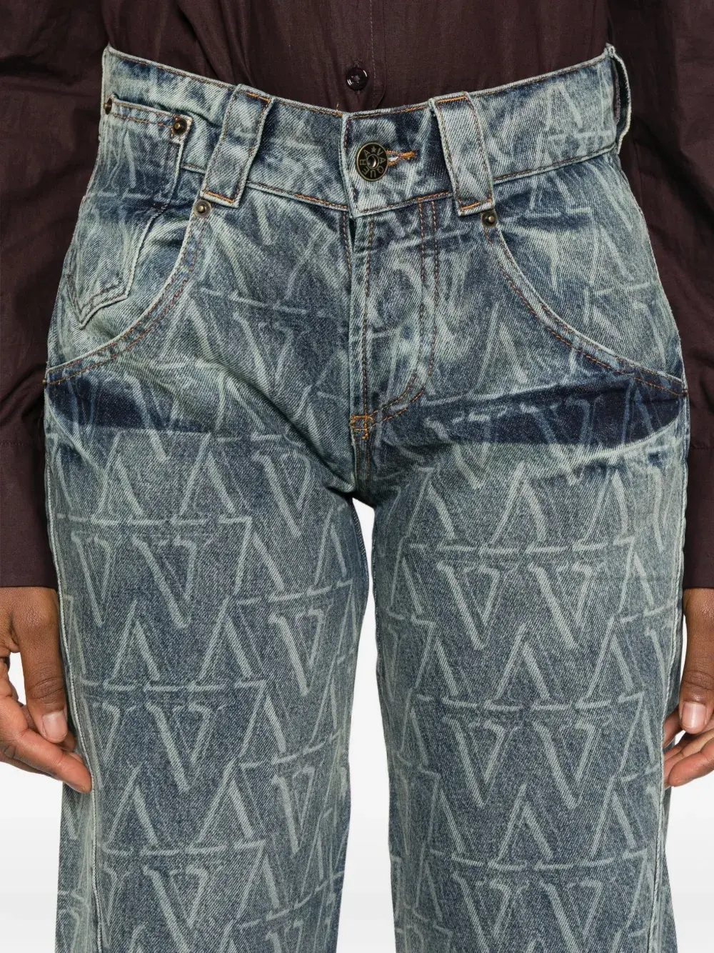 Синий монограмма принт пять карманов застежка на пуговицах выцветшая стирка