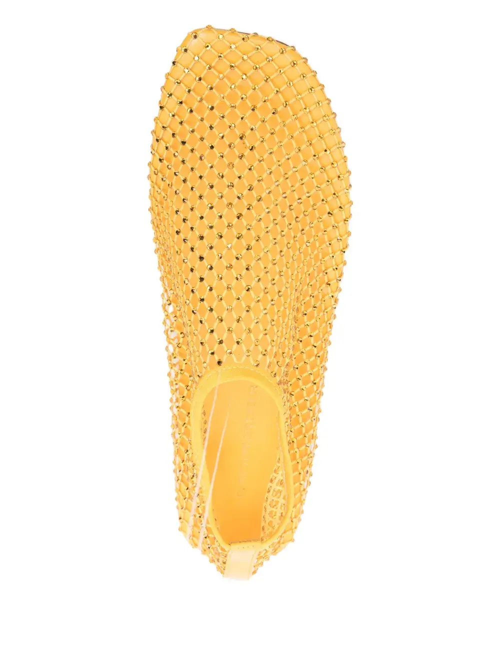 Желтый сетчатый верх украшение кристаллами модель без застежки заостренный носок фирменная стелька