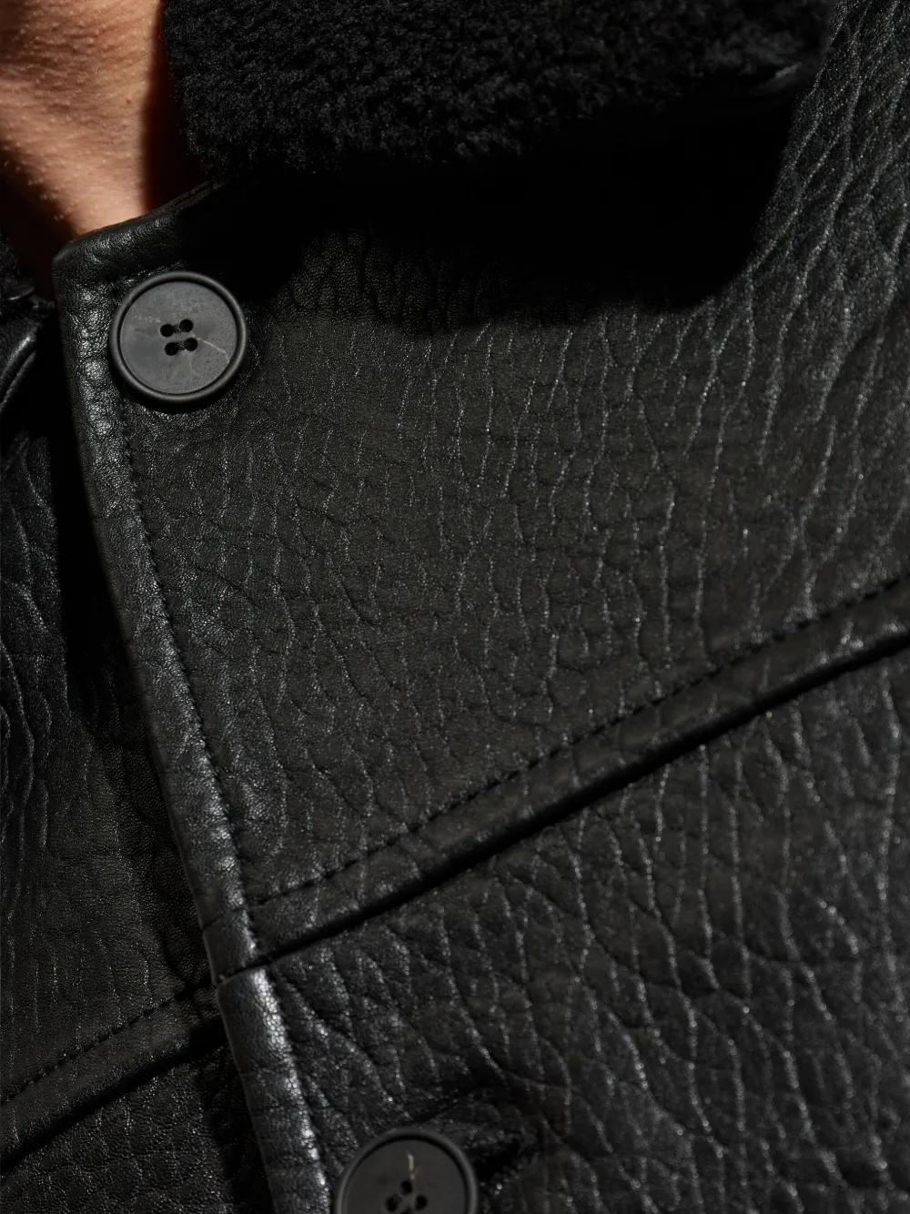 Черный овечья кожа текстурированный эффект застежка на пуговицы воротник из овчины прорезные карманы