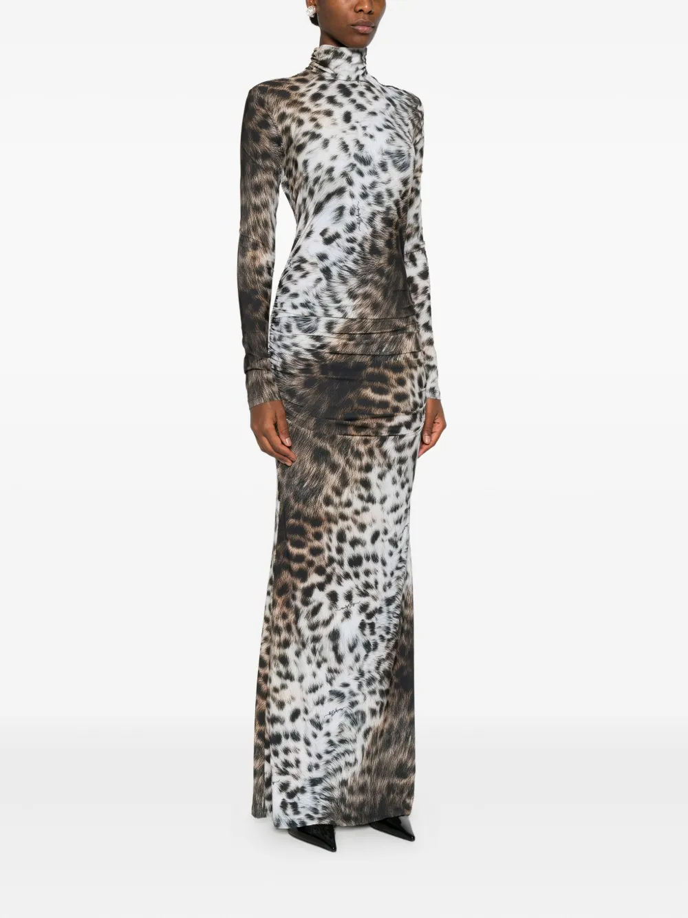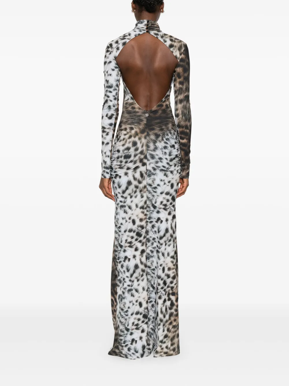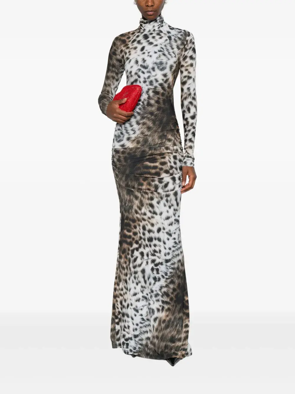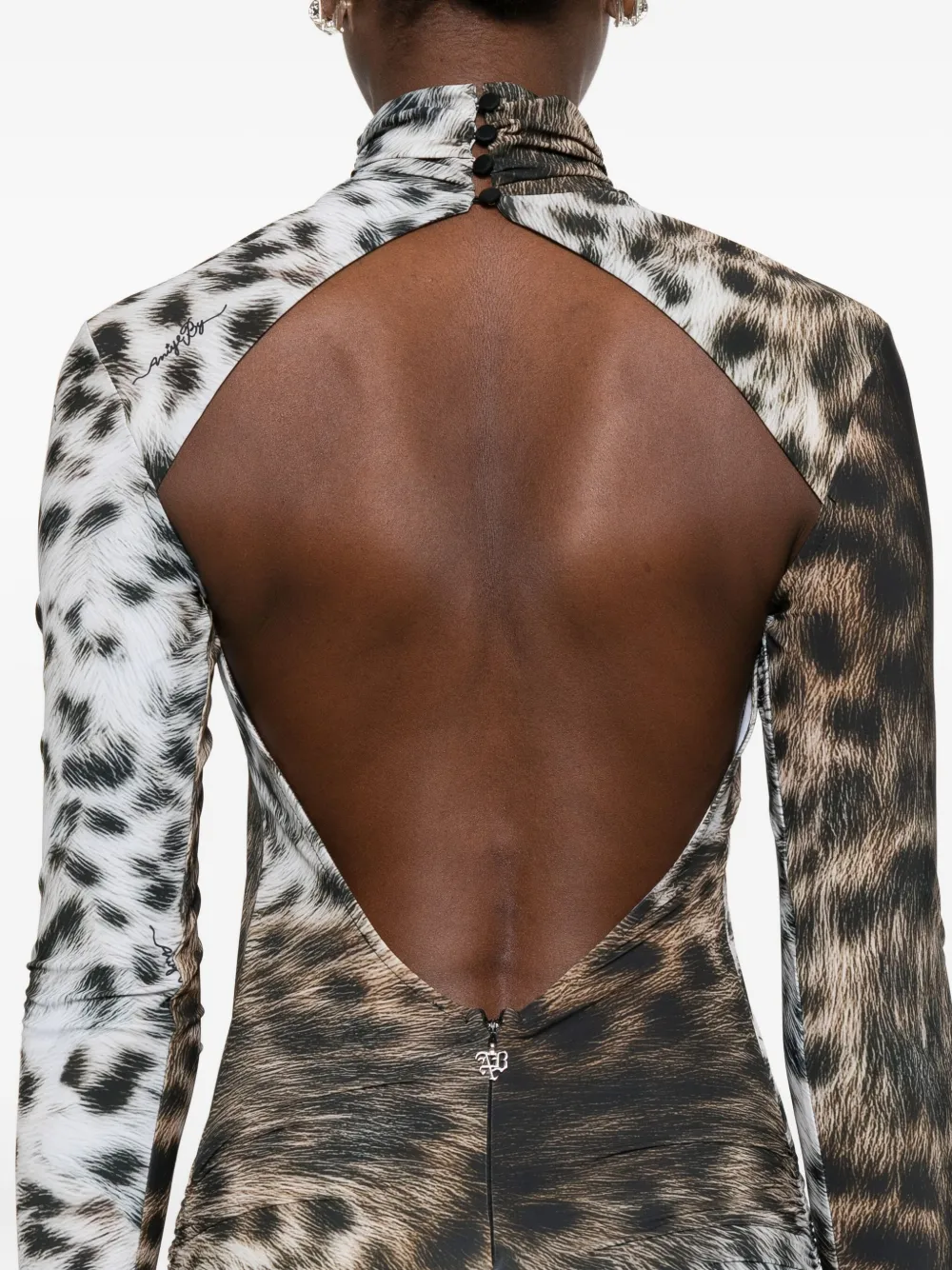 Коричневый леопардовый принт высокий ворот длинные рукава прилегающий лиф скрытая застежка-молния