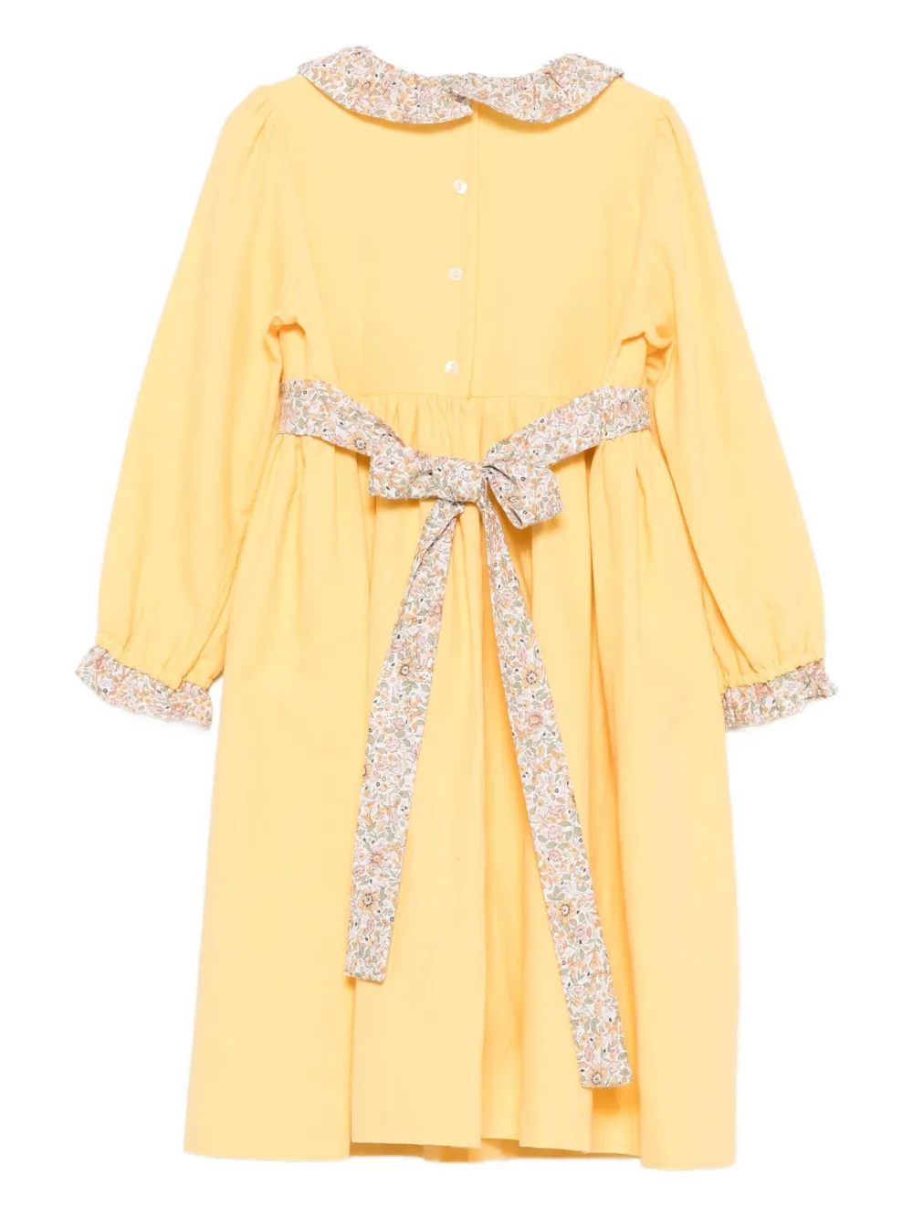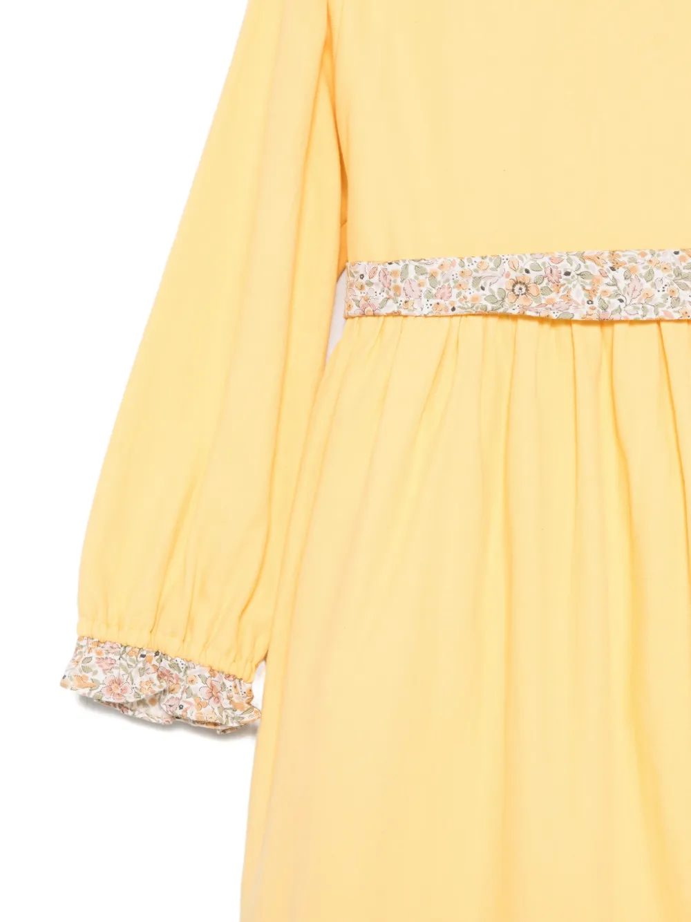 Желтый оборчатый воротник лента с цветочным принтом длинные рукава оборчатые манжеты