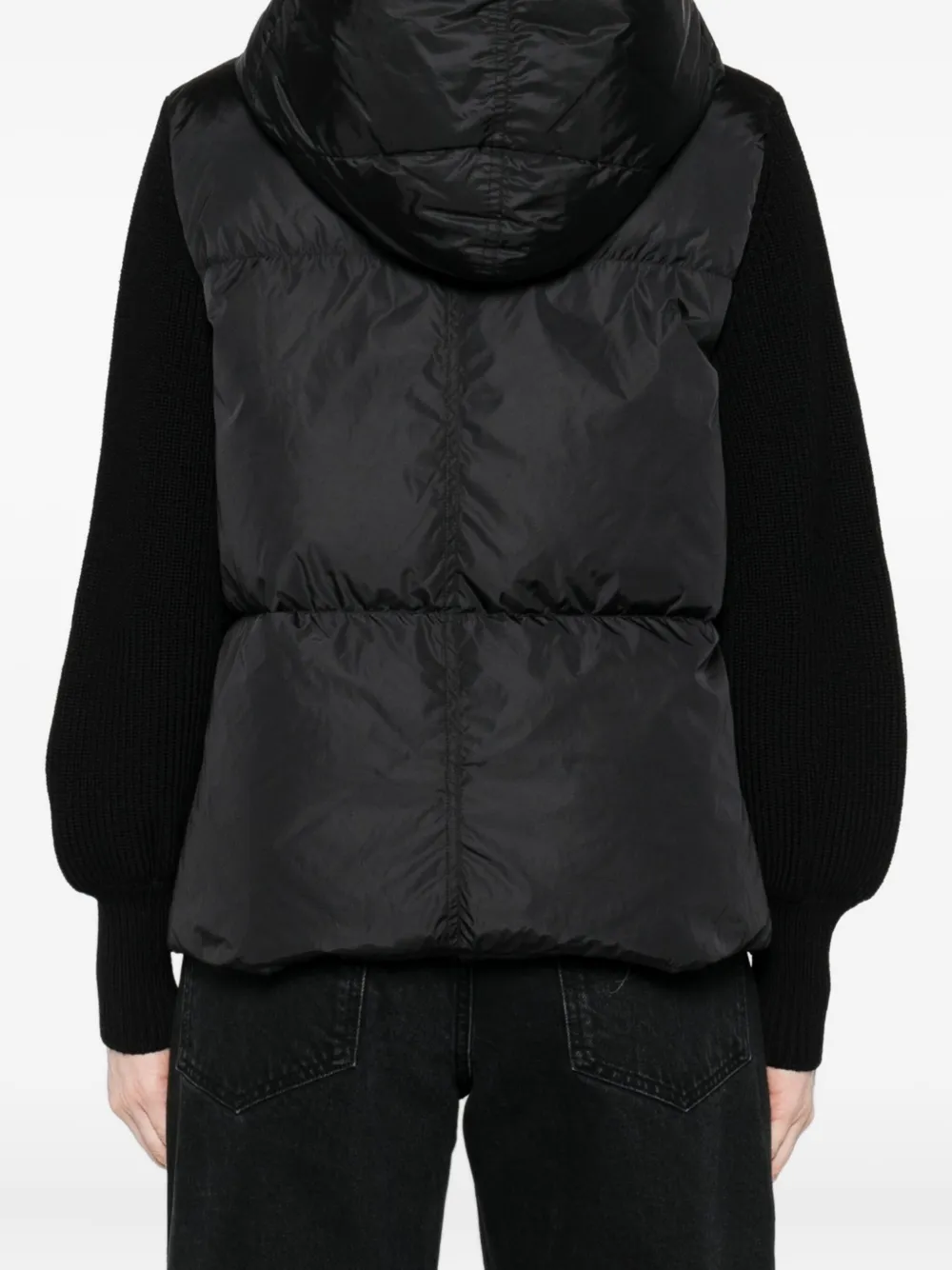 Черный стеганый материал капюшон застежка на пуговицы вязаные рукава