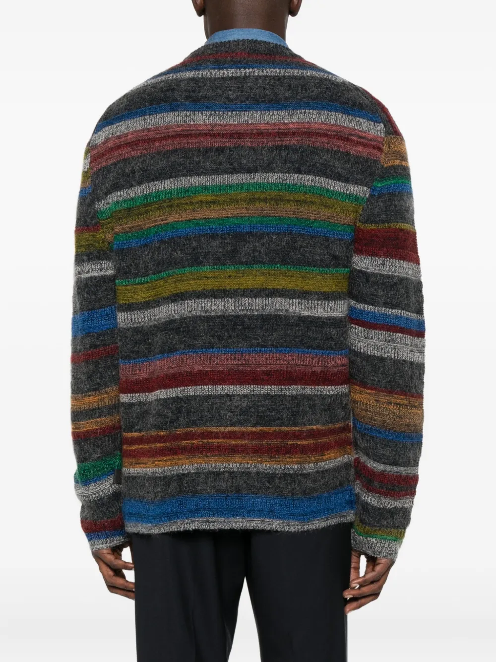 Серый многоцветные полоски круглый вырез длинные рукава манжеты в рубчик