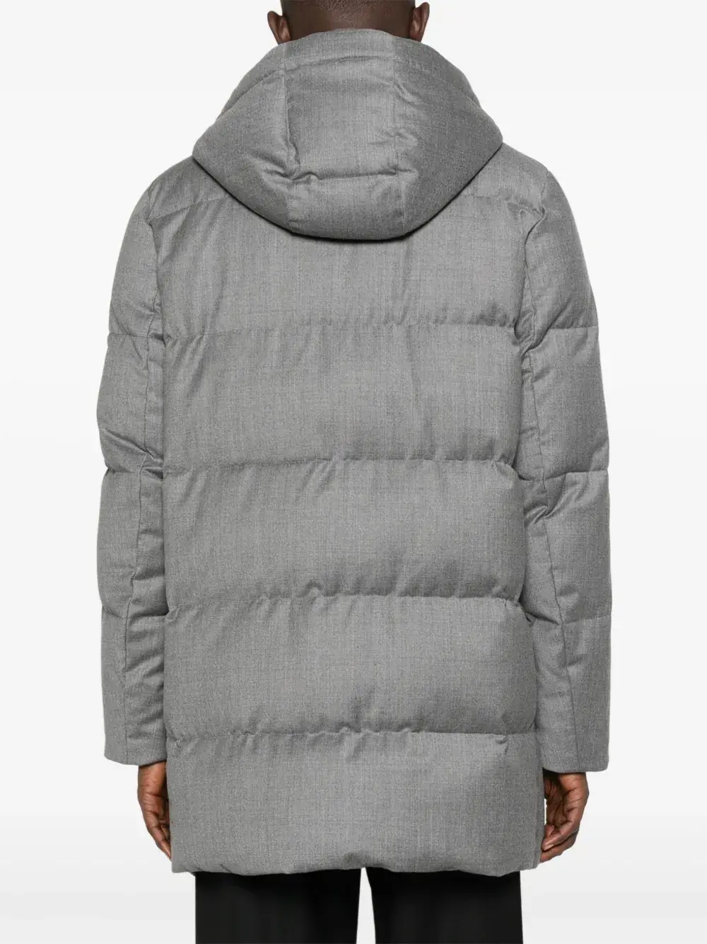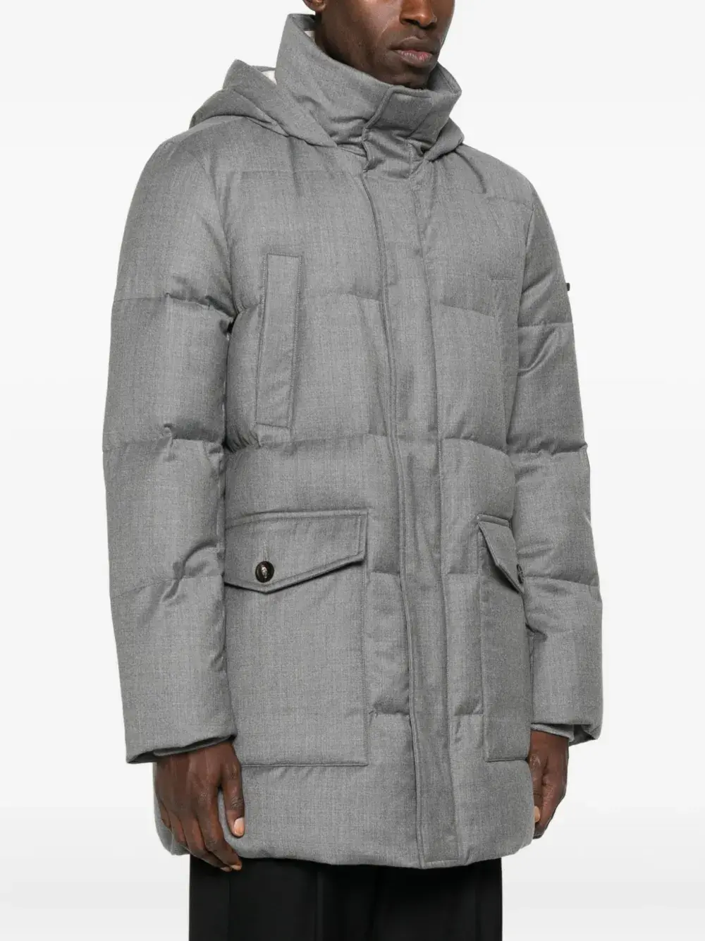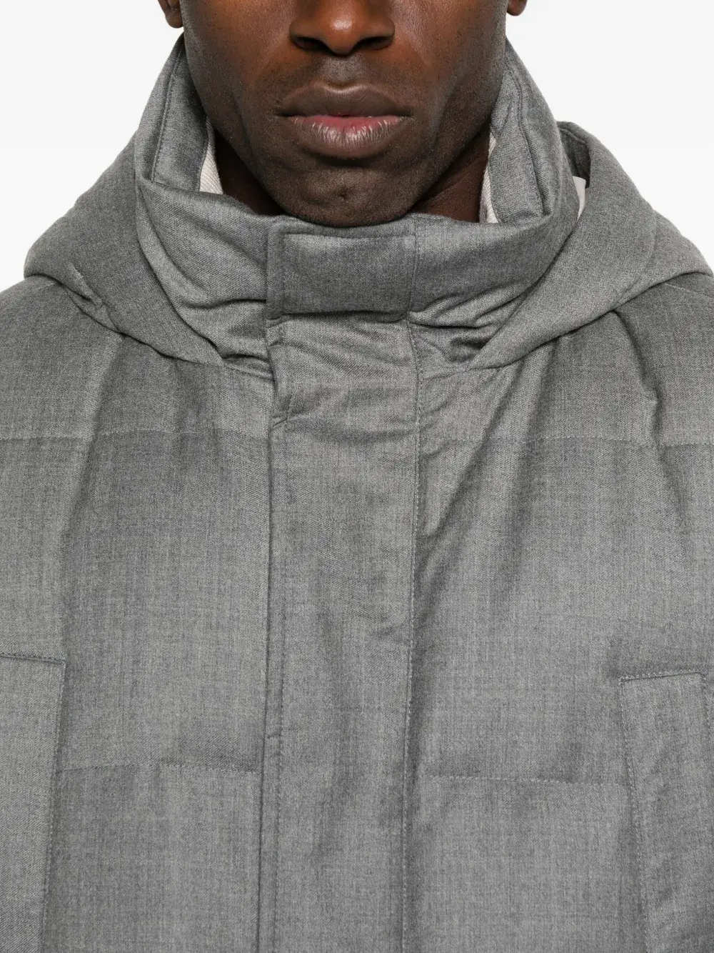 Серый стеганый дизайн капюшон нагрудные карманы с клапанами скрытая застежка спереди прямой нижний край