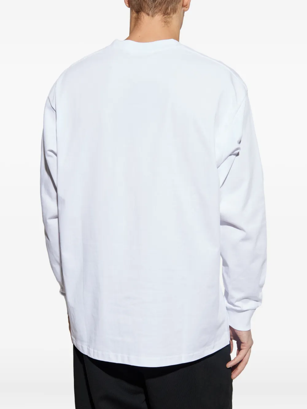 Белый графика с эффектом аэрозольной краски длинные рукава круглый вырез хлопок