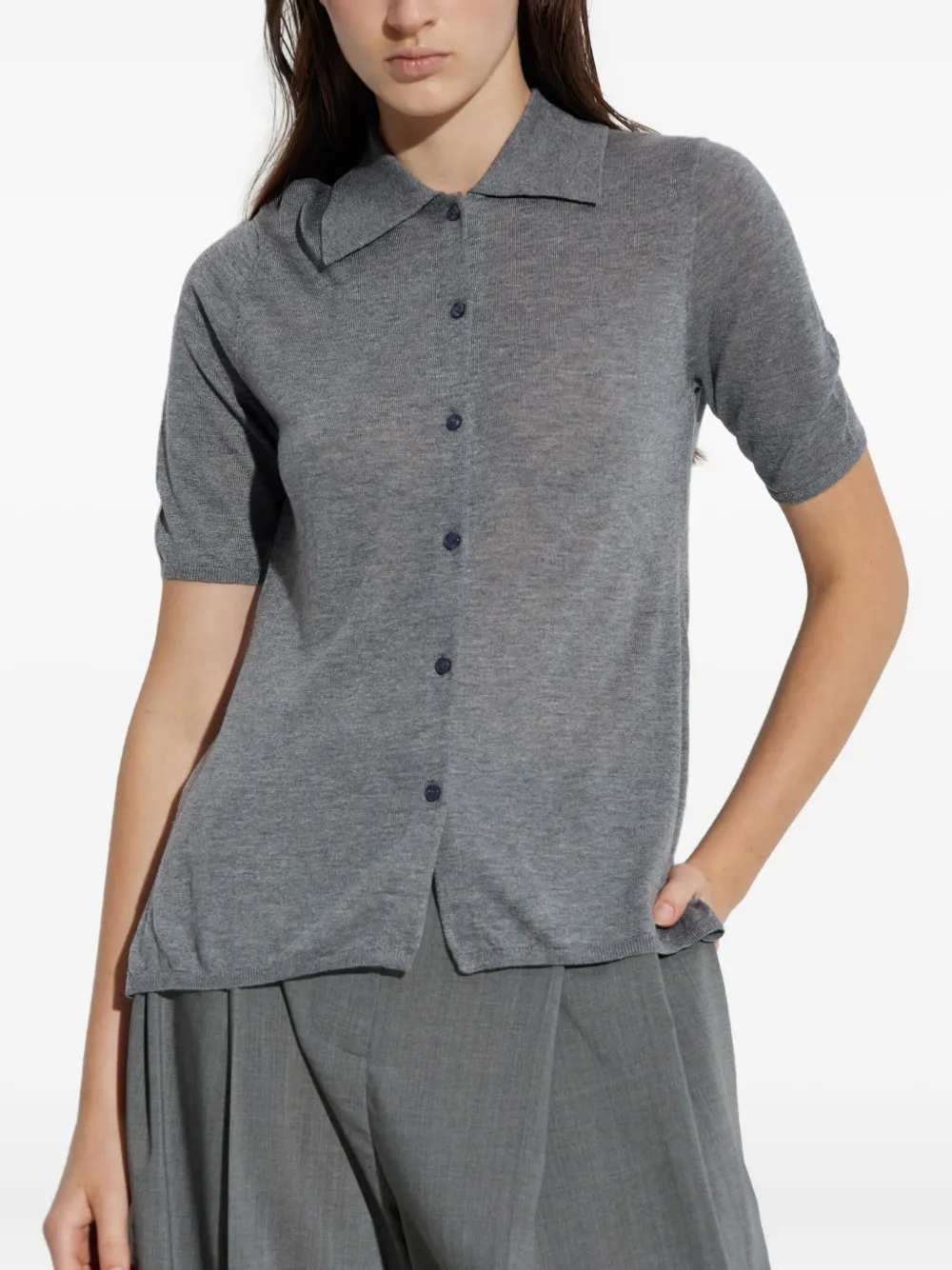 Серый воротник поло застежка на пуговицы спереди короткие рукава вязаная ткань