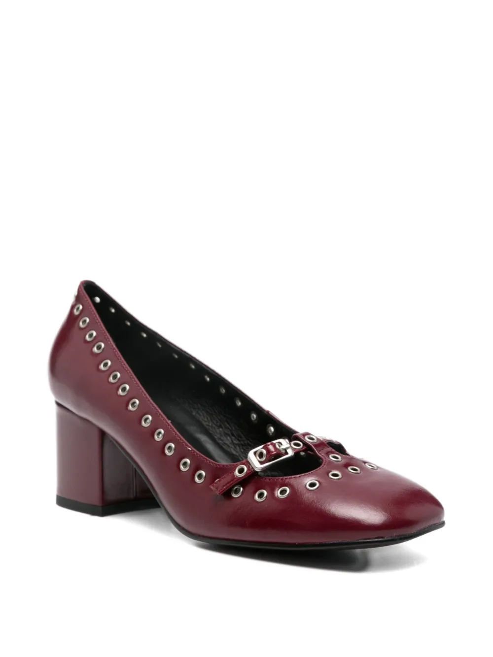 Темно-красный кожа детали с люверсами декор с пряжками каблук-«блок» квадратный носок