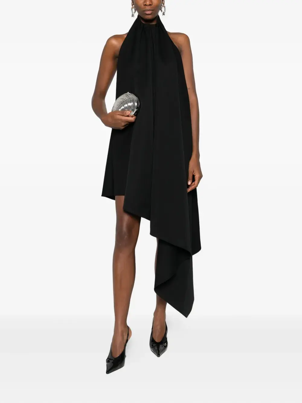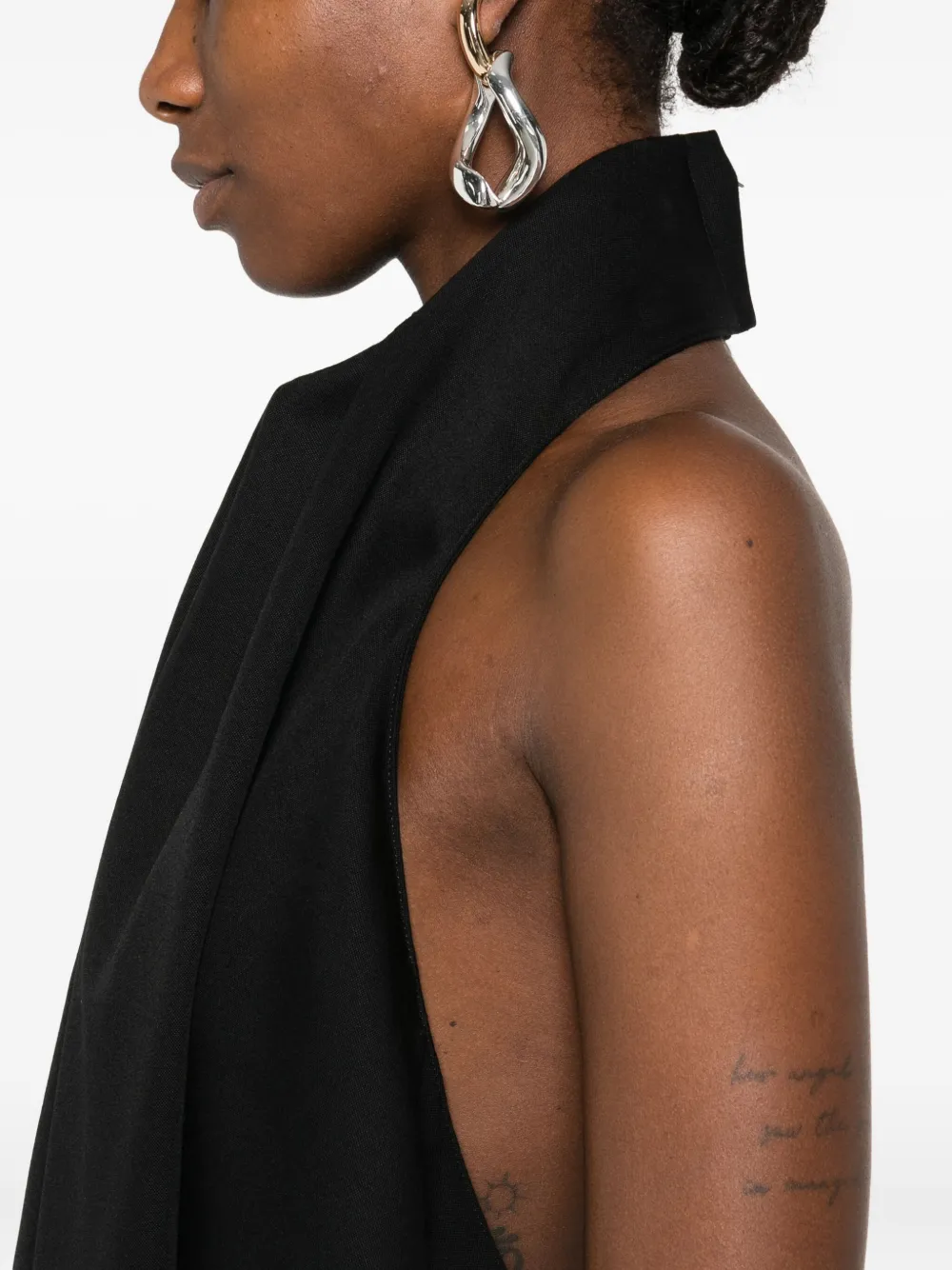 Черный шерсть халтер асимметричный подол драпировка без рукавов