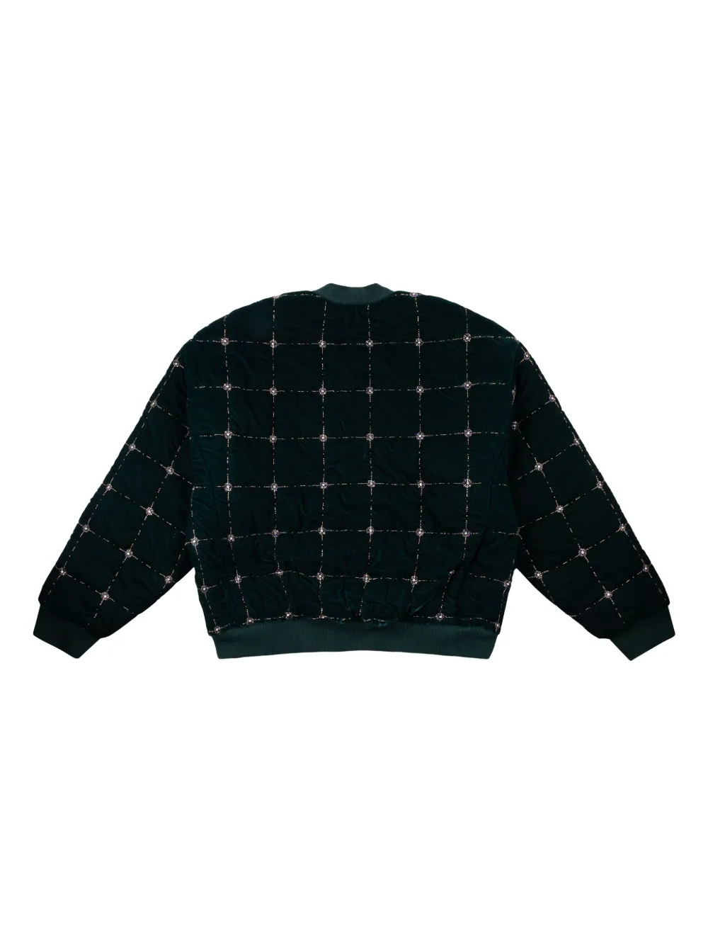 Темно-зеленый стеганый дизайн застежка-молния спереди длинные рукава