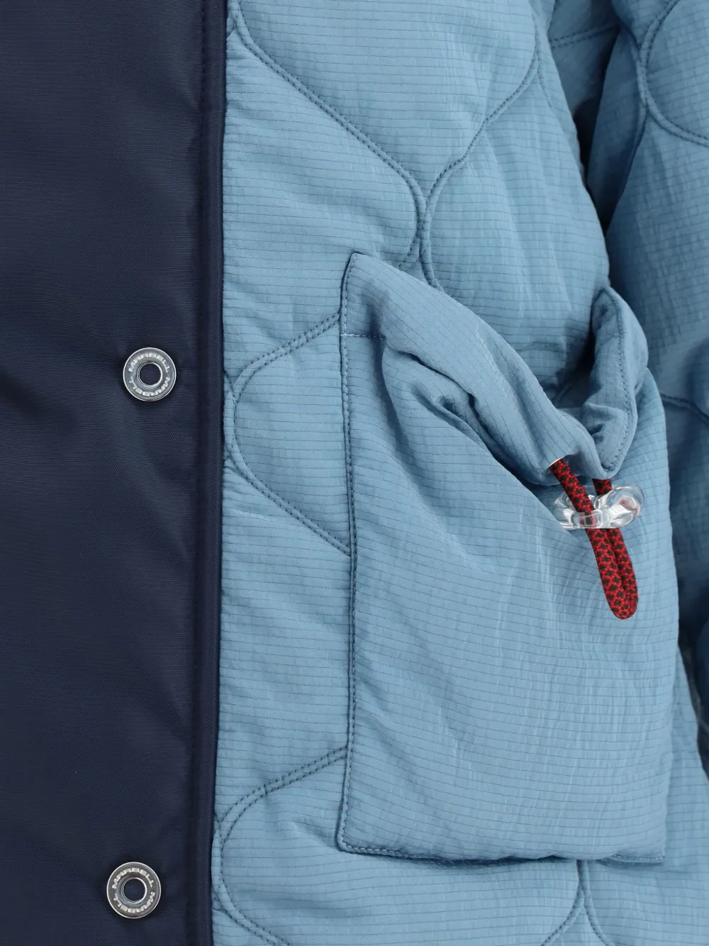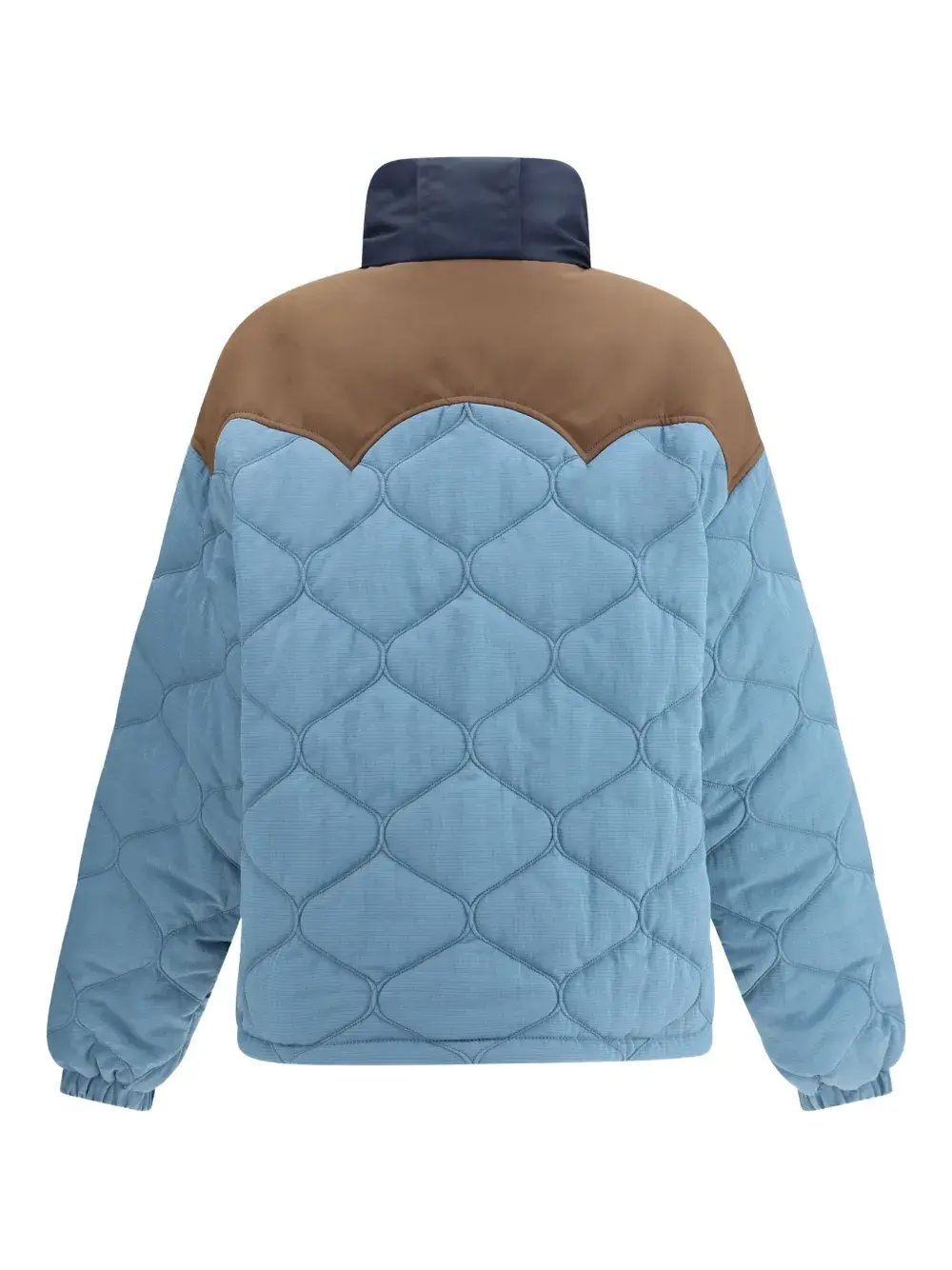 Светло-голубой стеганый узор «ромб» коричневая вставка темно-синяя вставка застежка-молния двубортная застежка на пуговицах карман с шнурком