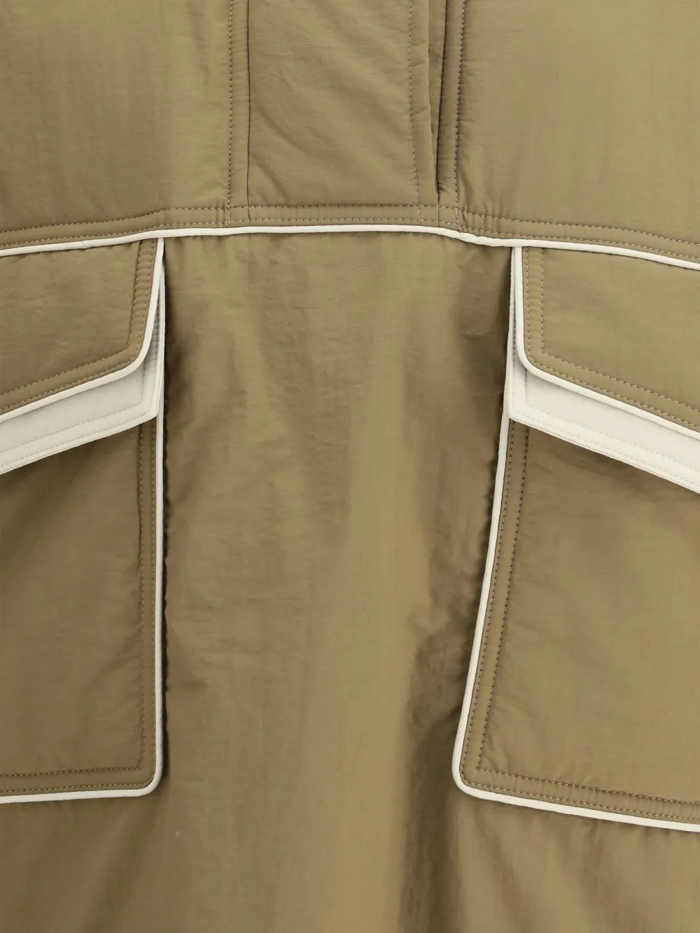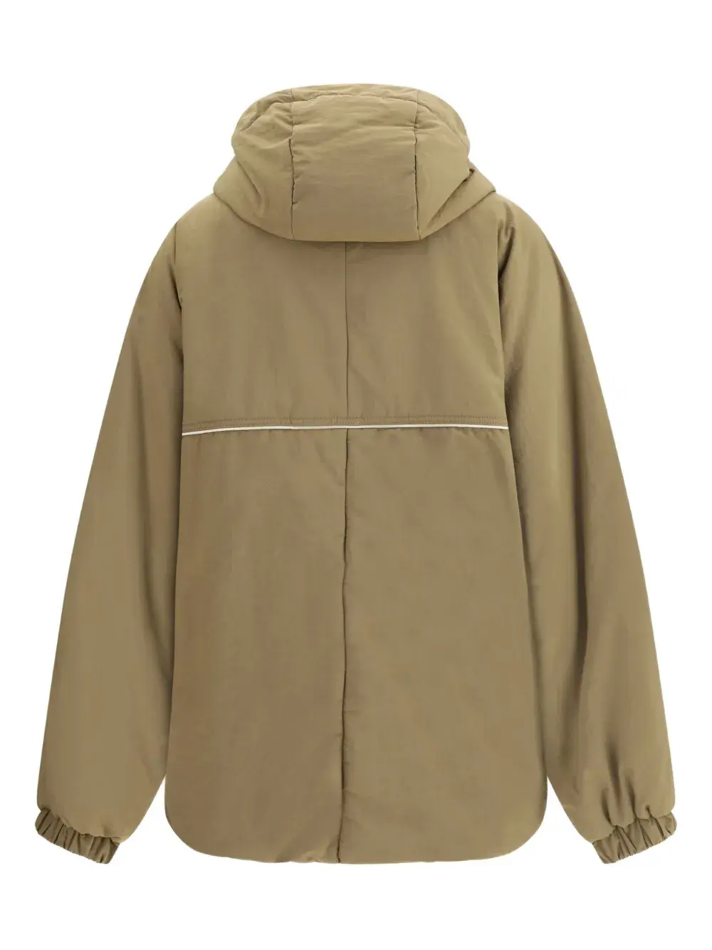 Хаки-коричневый капюшон два кармана с клапанами контрастная строчка застежка на половину молнии