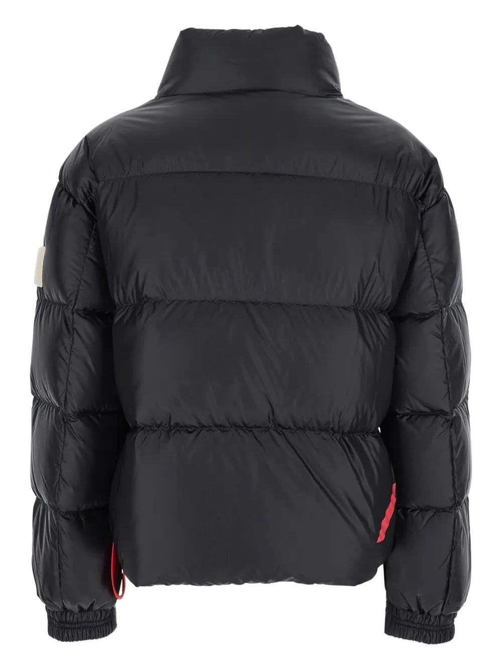 Черный стеганый дизайн высокий воротник застежка на молнию нашивка с логотипом