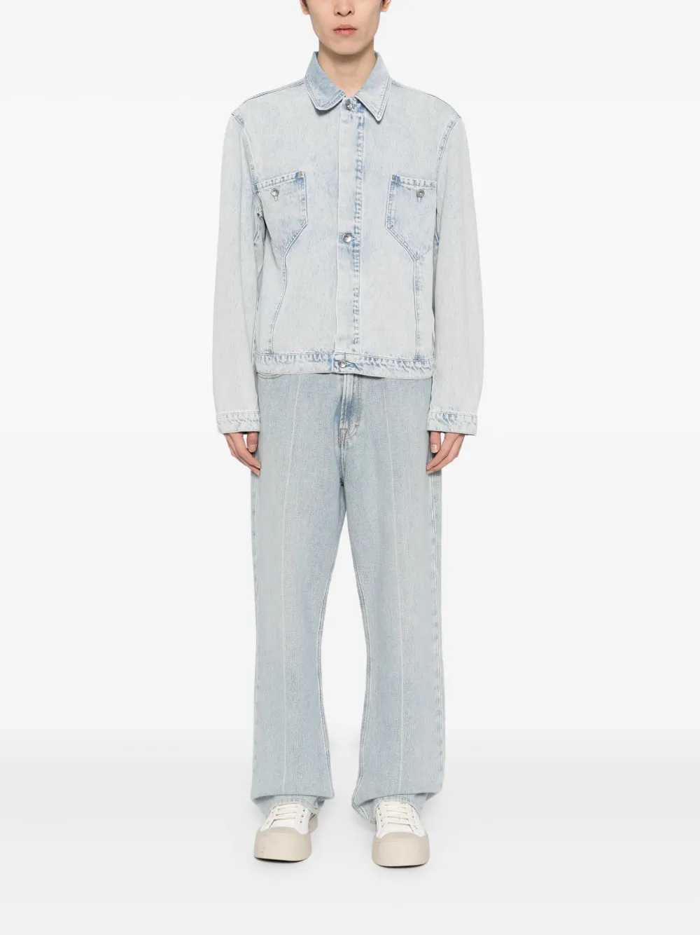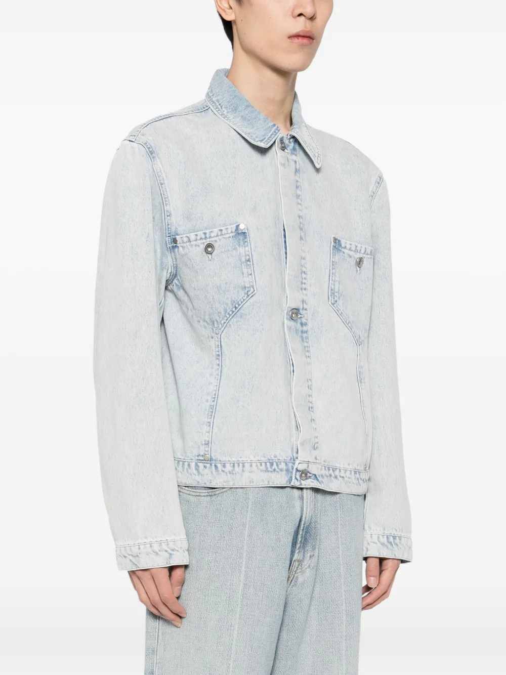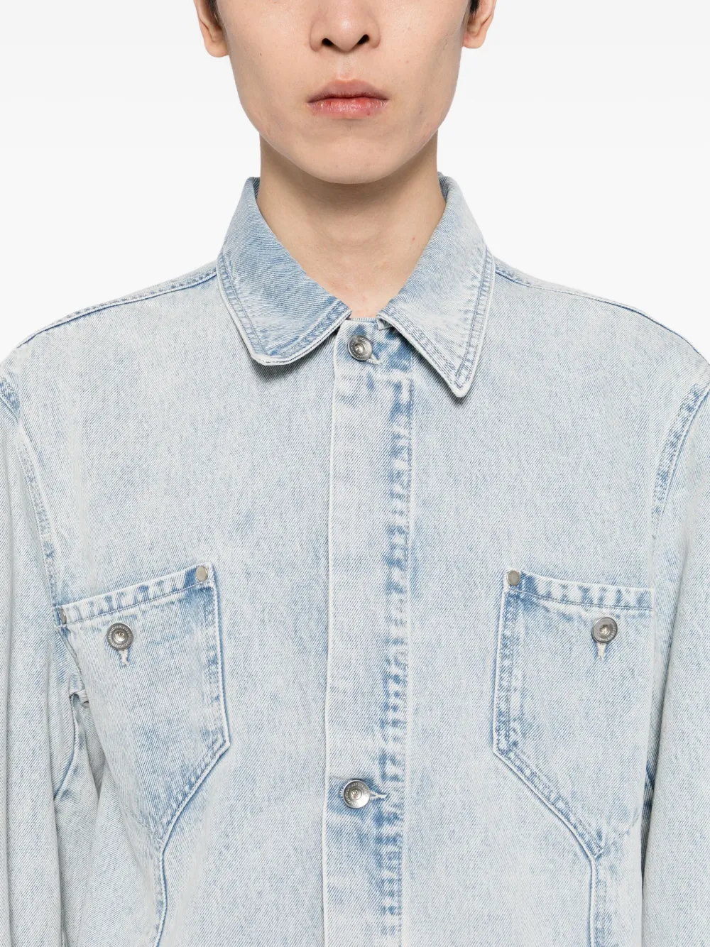 Светло-голубойзастежка на пуговицы спередидва нагрудных кармана на пуговицахманжеты на пуговицах
