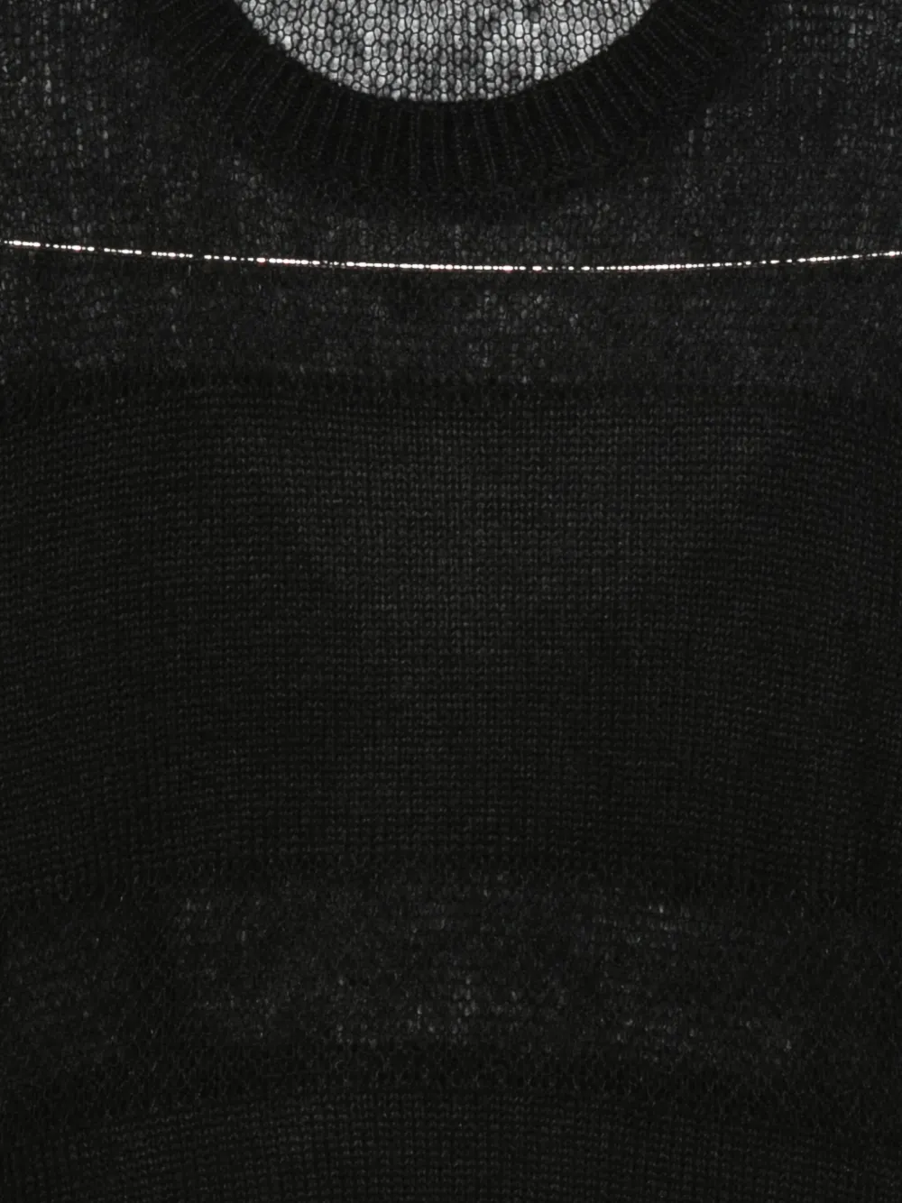 Черный круглый вырез длинные рукава манжеты и низ в рубчик полупрозрачная конструкция