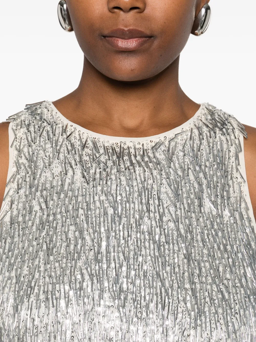 Серый отделка пайетками круглый вырез без рукавов застежка-капля сзади