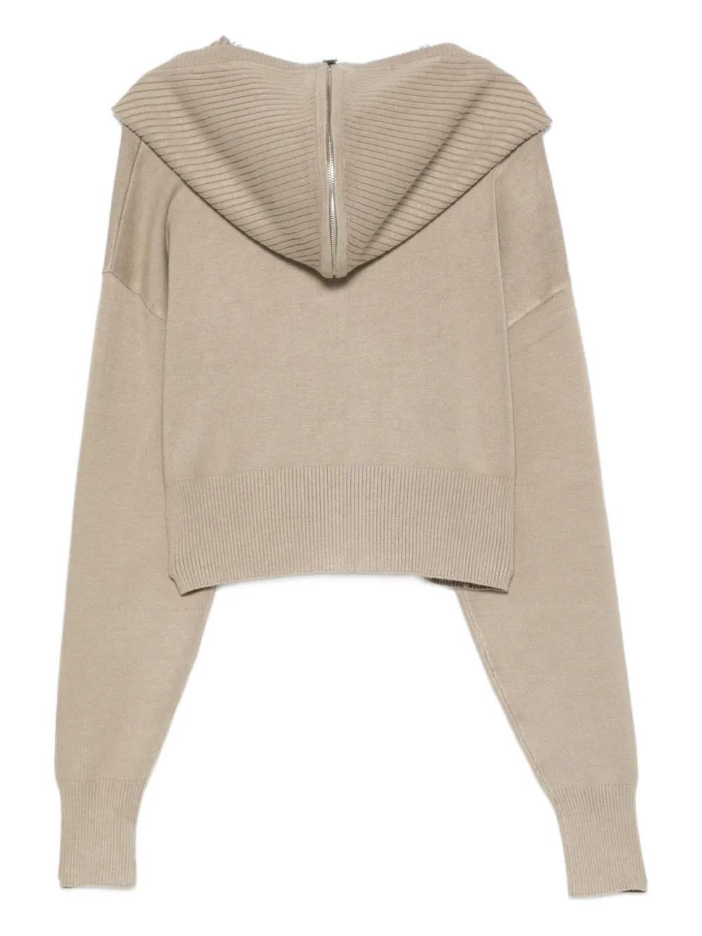 Бежевый вязаный в рубчик застежка-молния спереди классический капюшон длинные рукава укороченный