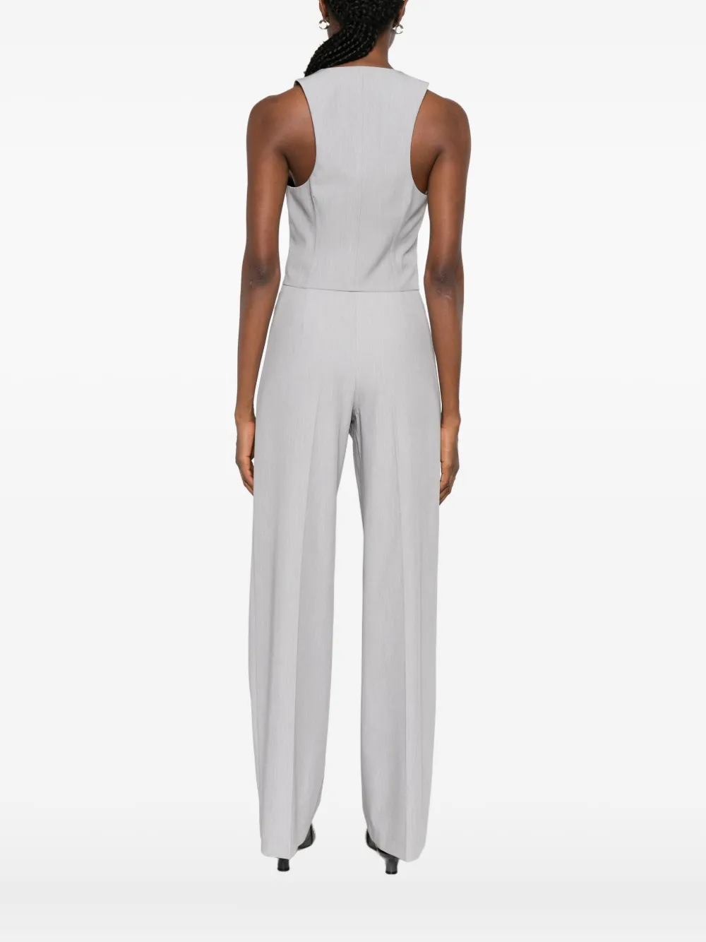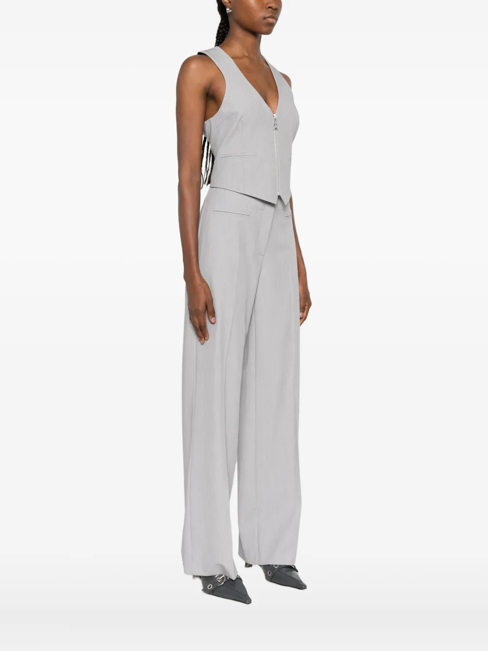 Серый V-образный вырез застежка-молния спереди без рукавов боковые прорезные карманы укороченный