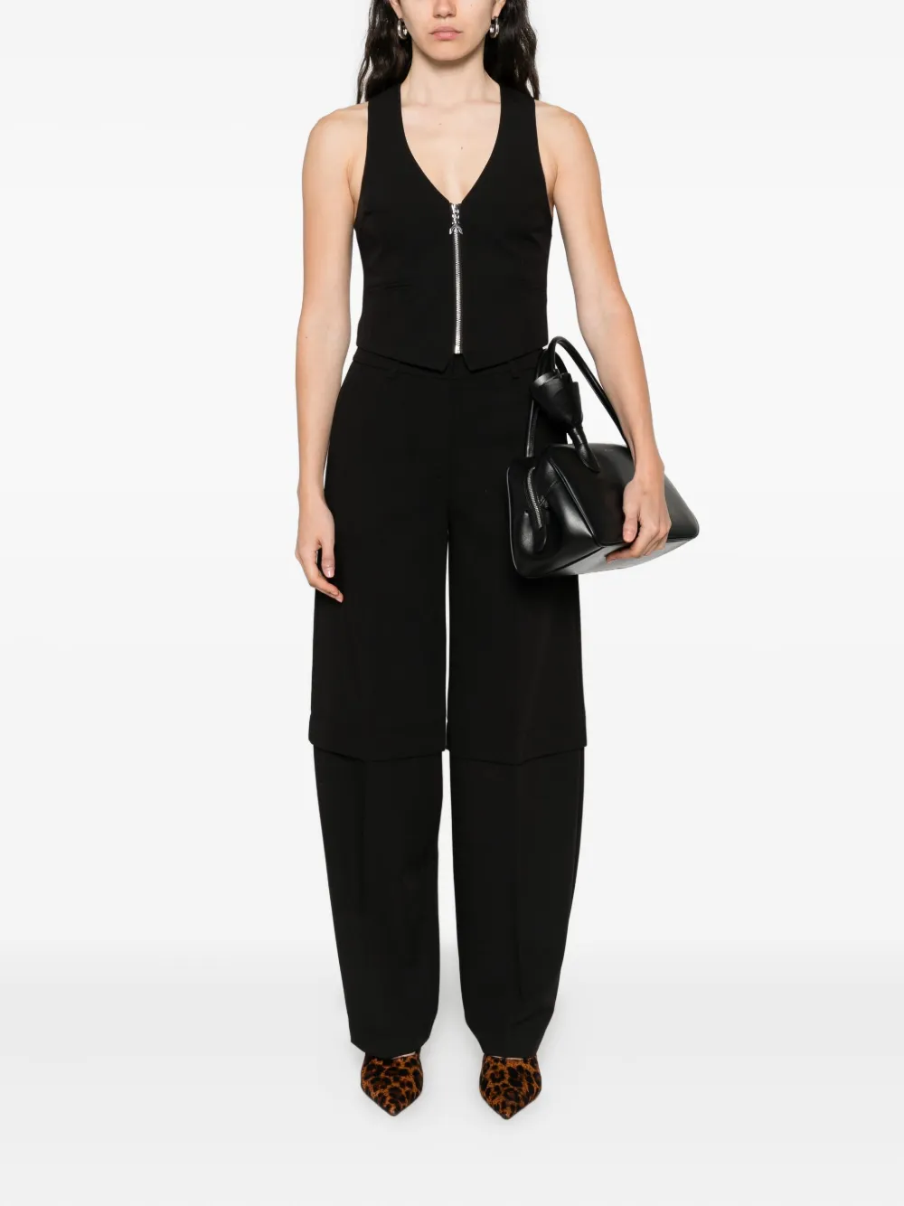Черный V-образный вырез застежка-молния спереди без рукавов