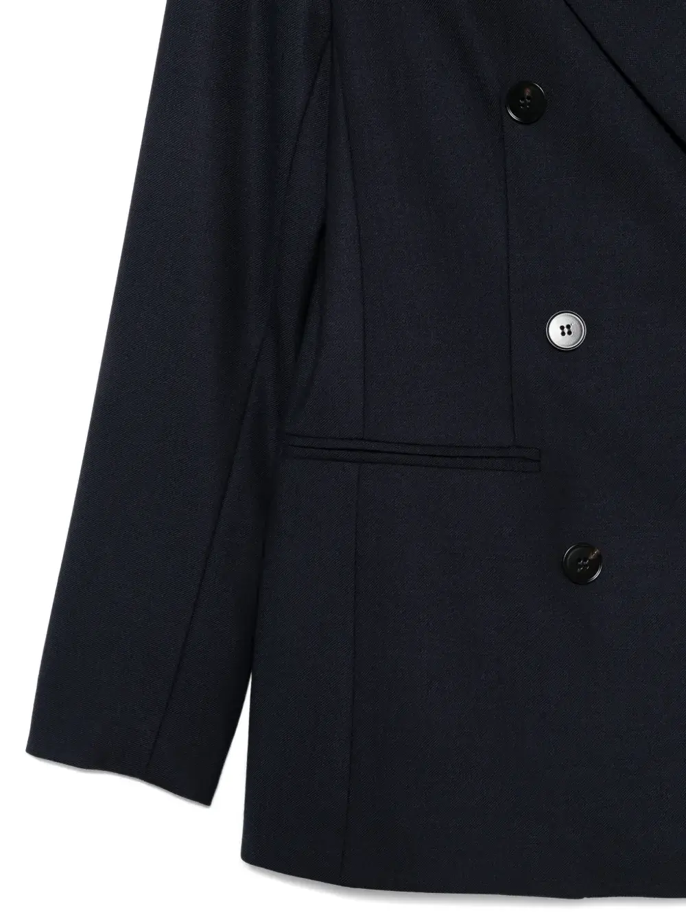 Синий двубортная застежка на пуговицах лацканы с вырезом передние прорезные карманы