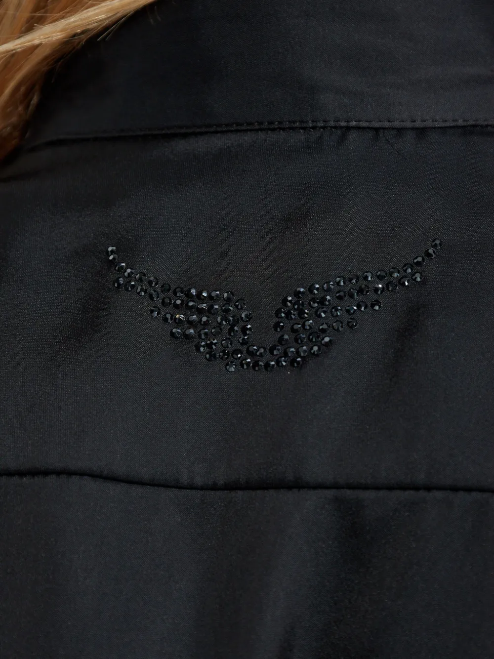 Черный завязка на шее застежка на пуговицы длинные рукава отделка кристаллами