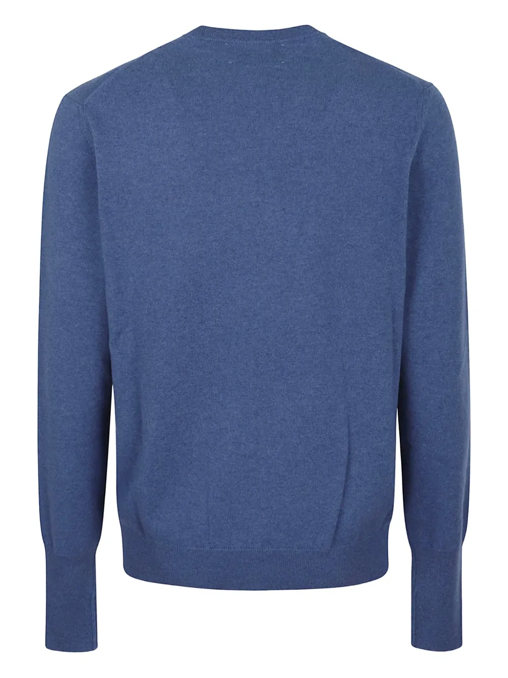 Синий кашемировый джемпер с круглым вырезом, длинными рукавами, ребристыми манжетами и ребристым низом