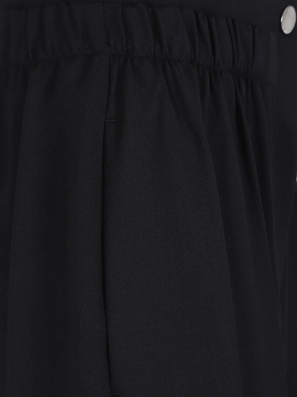 Черная эластичная поясная лента, потайная застежка-молния и пуговица, боковые карманы