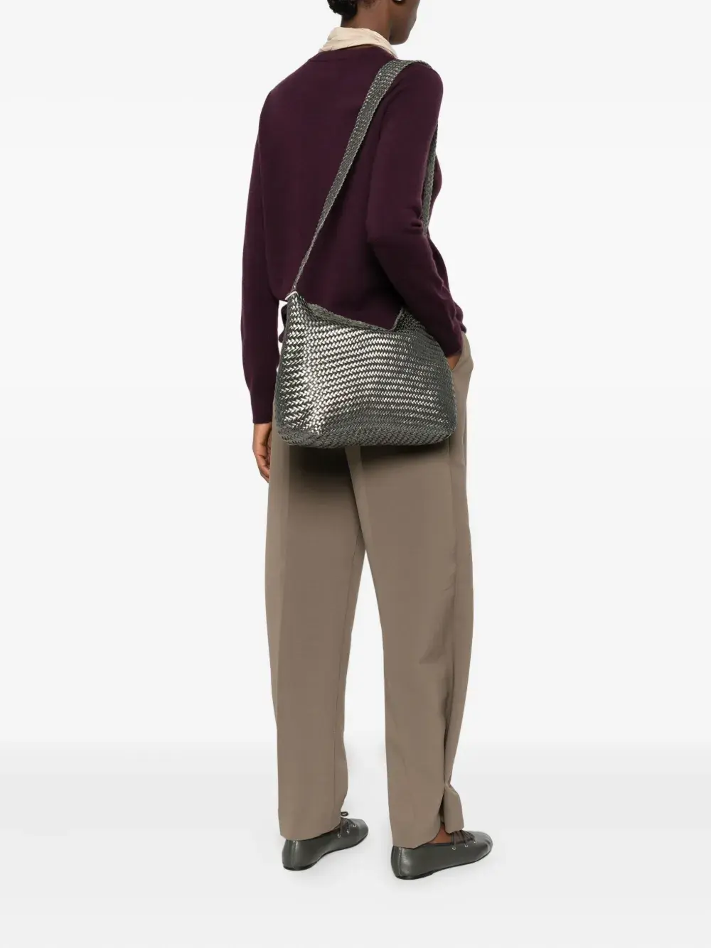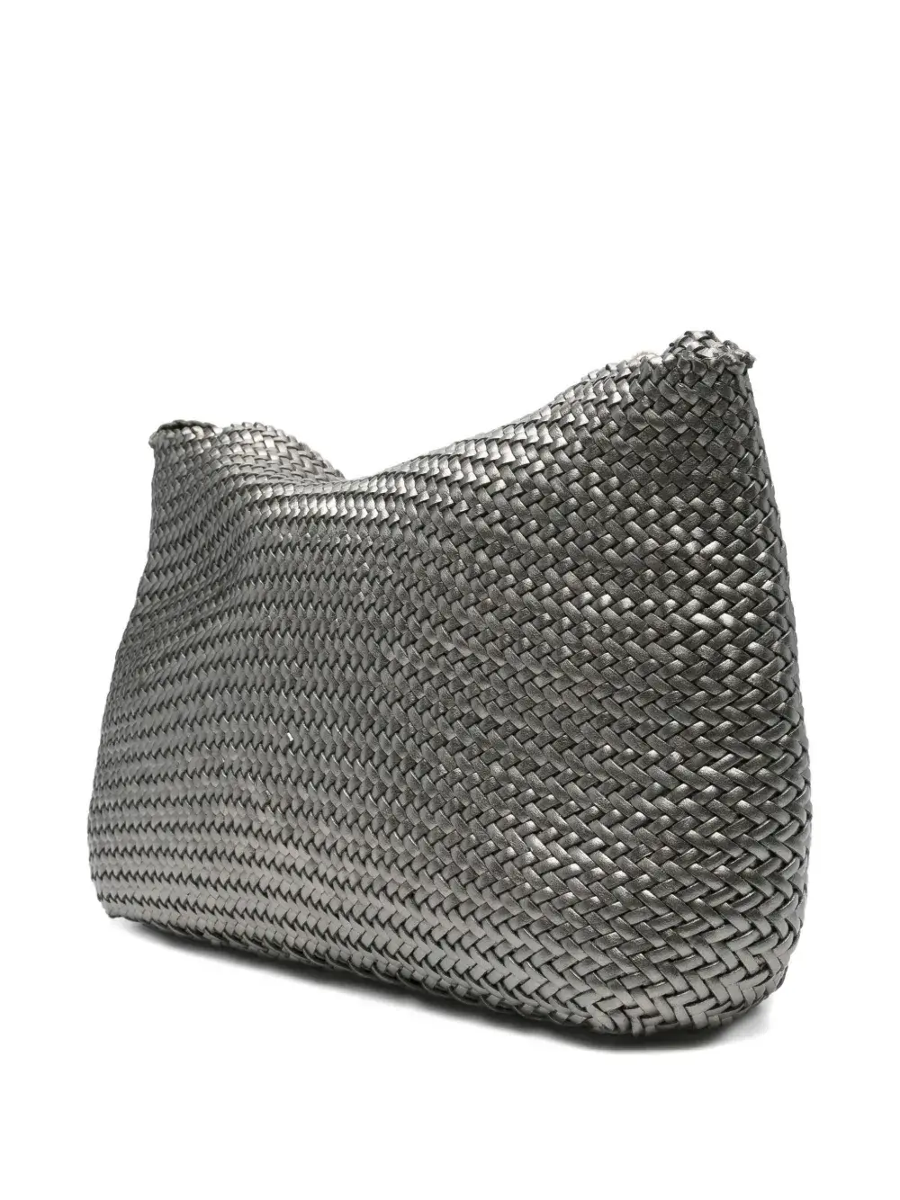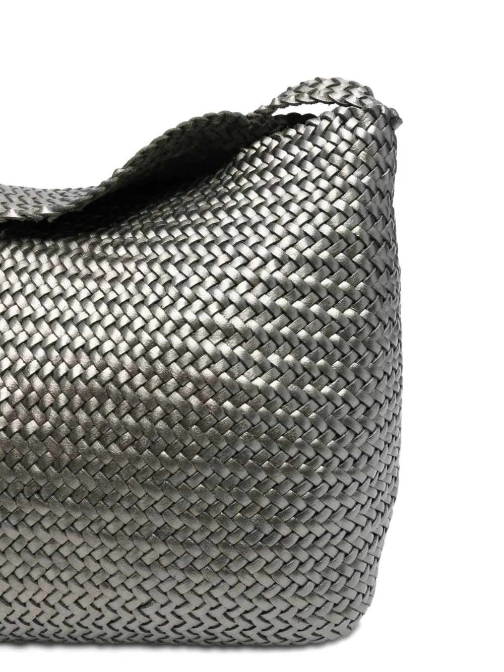 Темно-серый плетеный дизайн одна плечевой ремешок скрытая магнитная застежка изогнутый силуэт металлический блеск